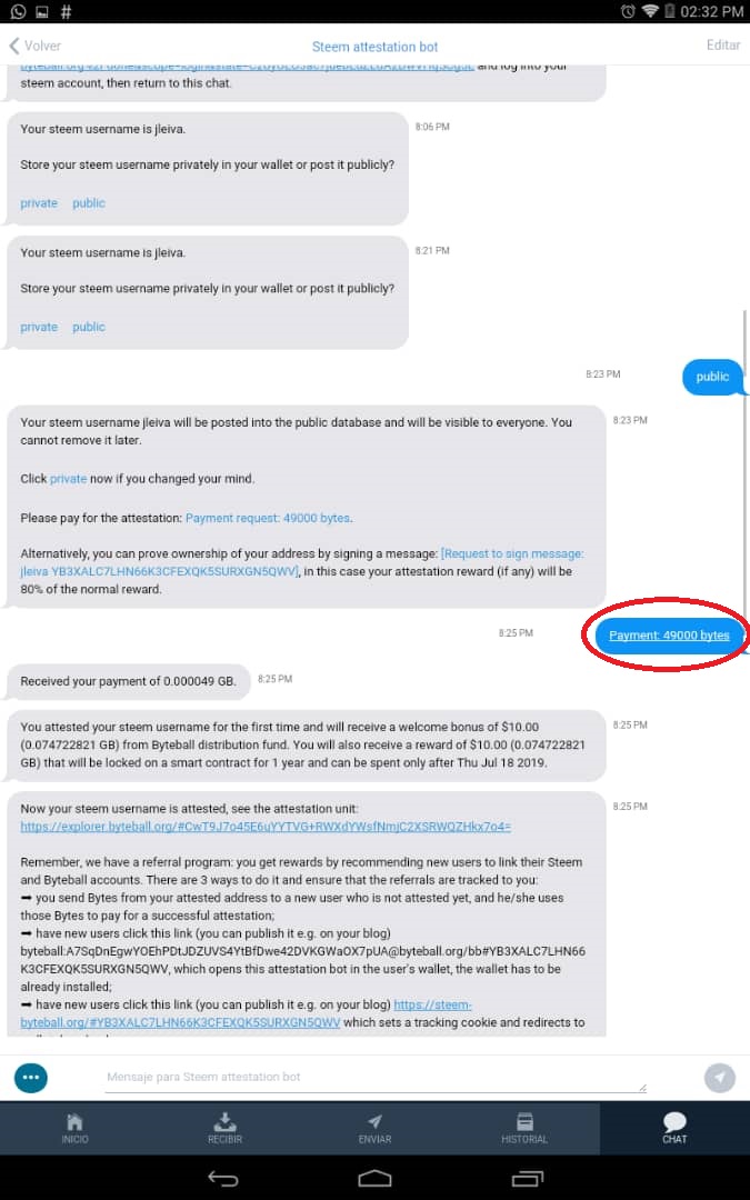 Luego el bot les pedirá pagar una comisión de 49k bytes ( ¿Recuerdan que les dije que necesitarian algo de fondos para continuar?)