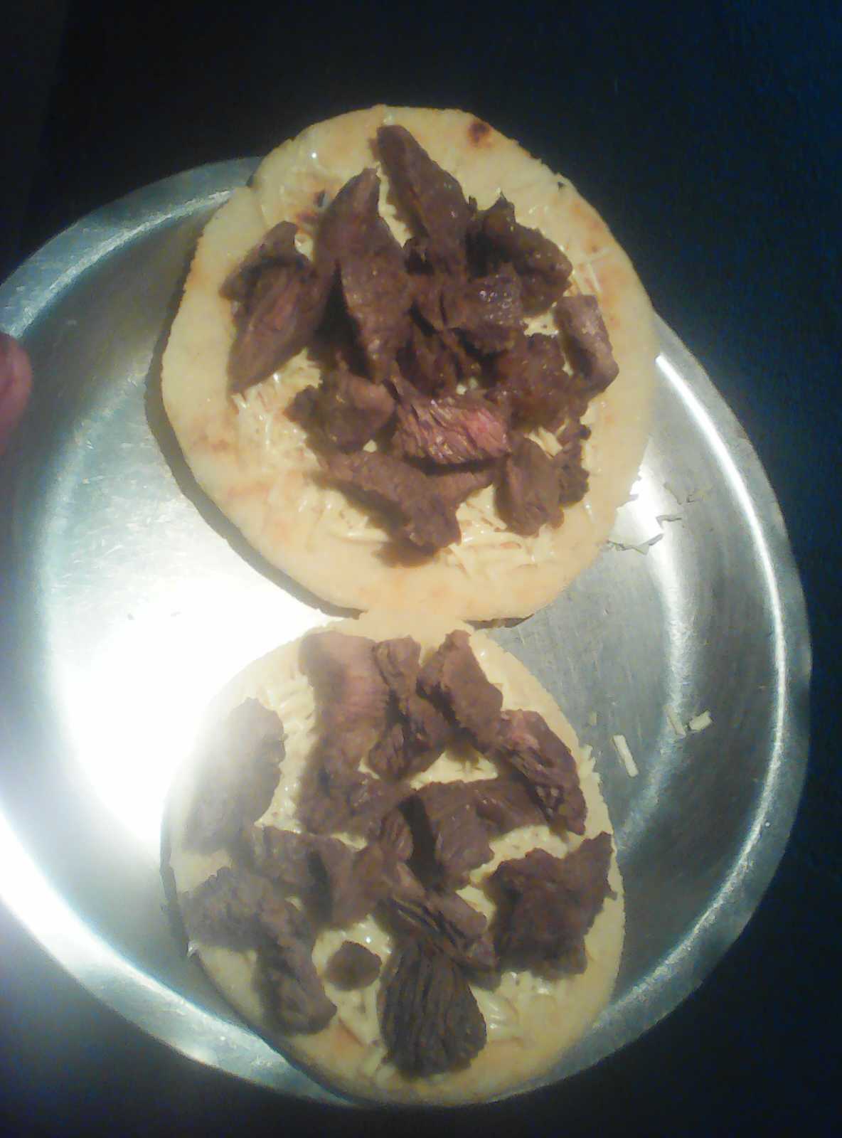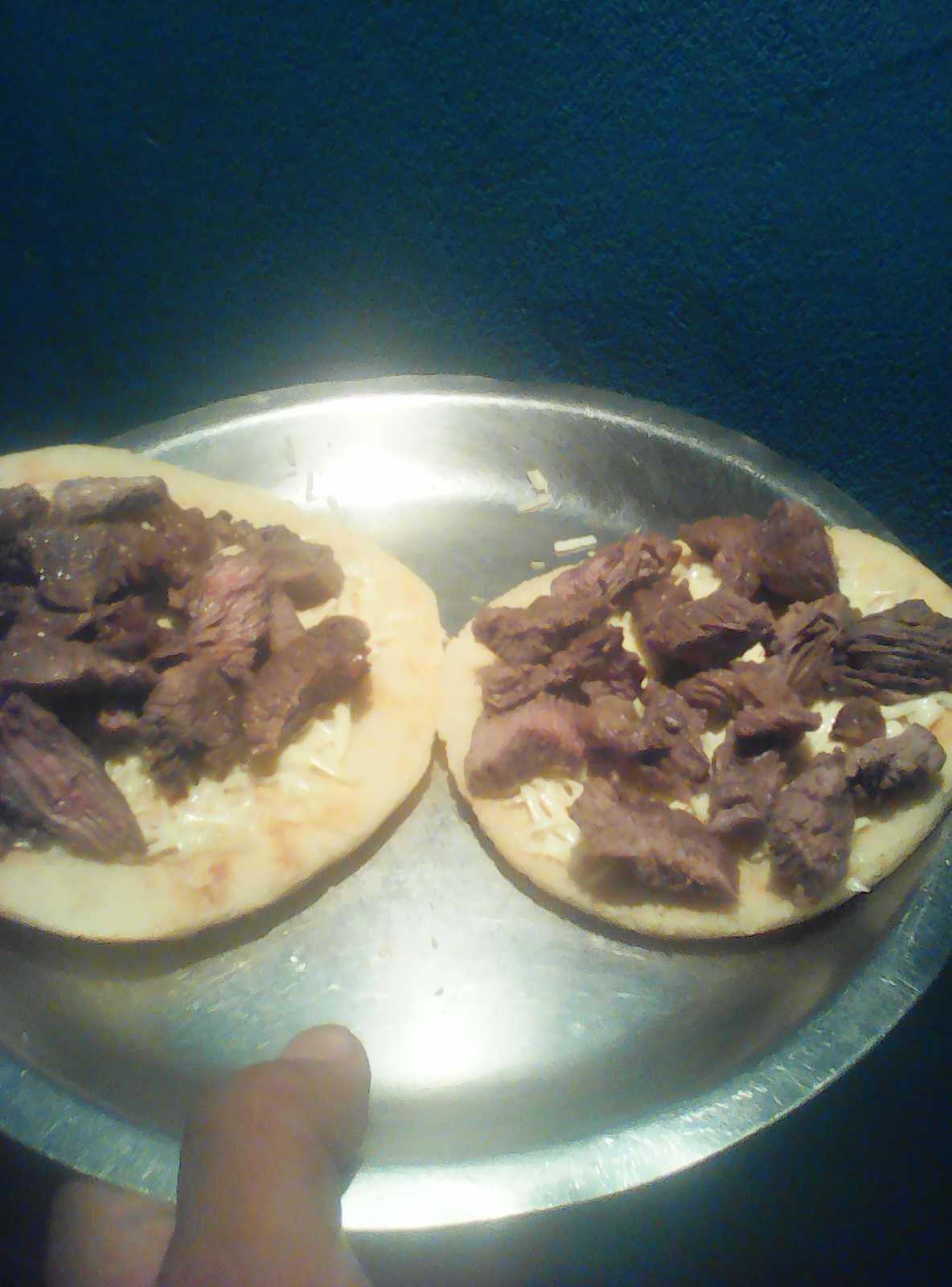 Allí Procederemos a colocar el queso y la carne por encima de la arepa y listo ya la tendremos lista para degustar ya sea en un desayuno o incluso en la cena.