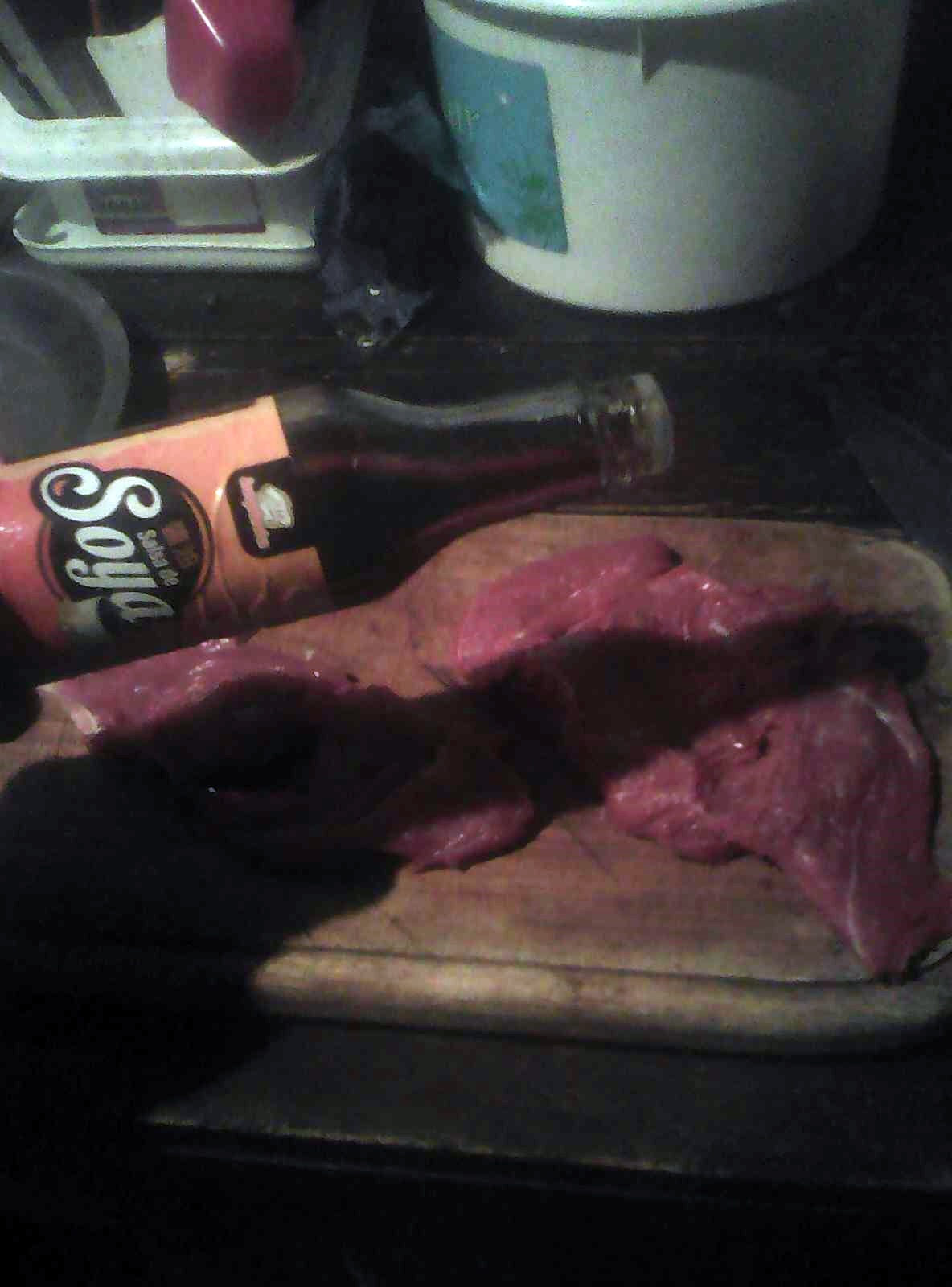Ahora procederemos a relajar nuestro pedazo de carne y le agregaremos salsa de soya y seguidamente el adobo esto por ambos lados, para así proceder a fritar, la misma mientras en un freidor con el aceite previamente calentado.