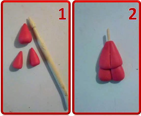 - Cuerpo: hacer una gota acocada; luego introducir las piernas, introducirle un palillo de altura para sostener la cabeza.