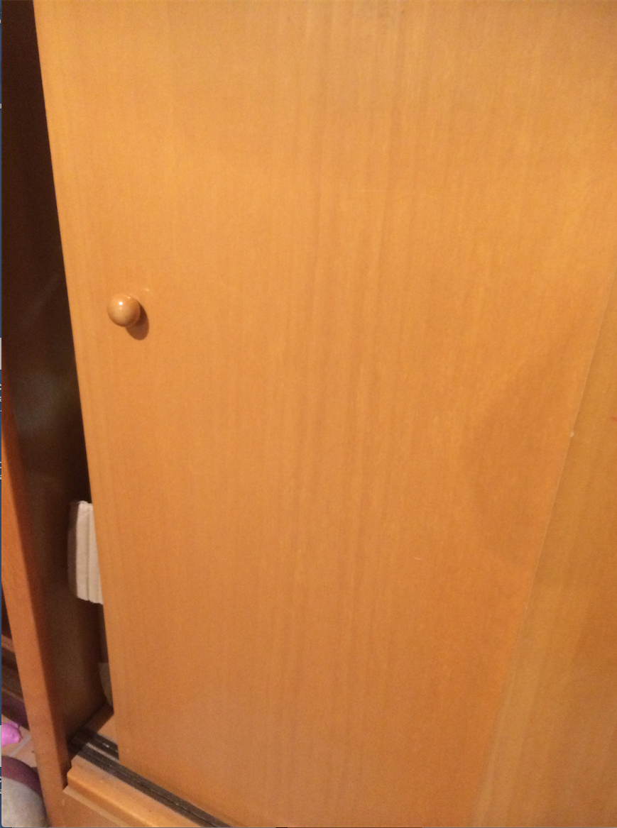 Aquella noche, me ocurrió de todo. Al fondo de la habitación se camuflaba un armario empotrado de puertas decoradas con el mismo papel que las paredes. Dos puertas correderas no podían abrirse pues estaban claveteadas por todas partes, y la tercera, que conservaba dos bisagras postizas de tres que le habían clavado —vaya chapuza—, estaba abarquillada y no corría, con lo que al intentar abrirla me cargué el raíl de arriba y se astilló la madera haciendo un ruido rechinan.