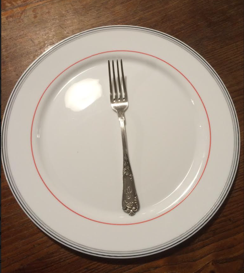 En ese momento, estaba llevando el tenedor a la boca con un bocado,