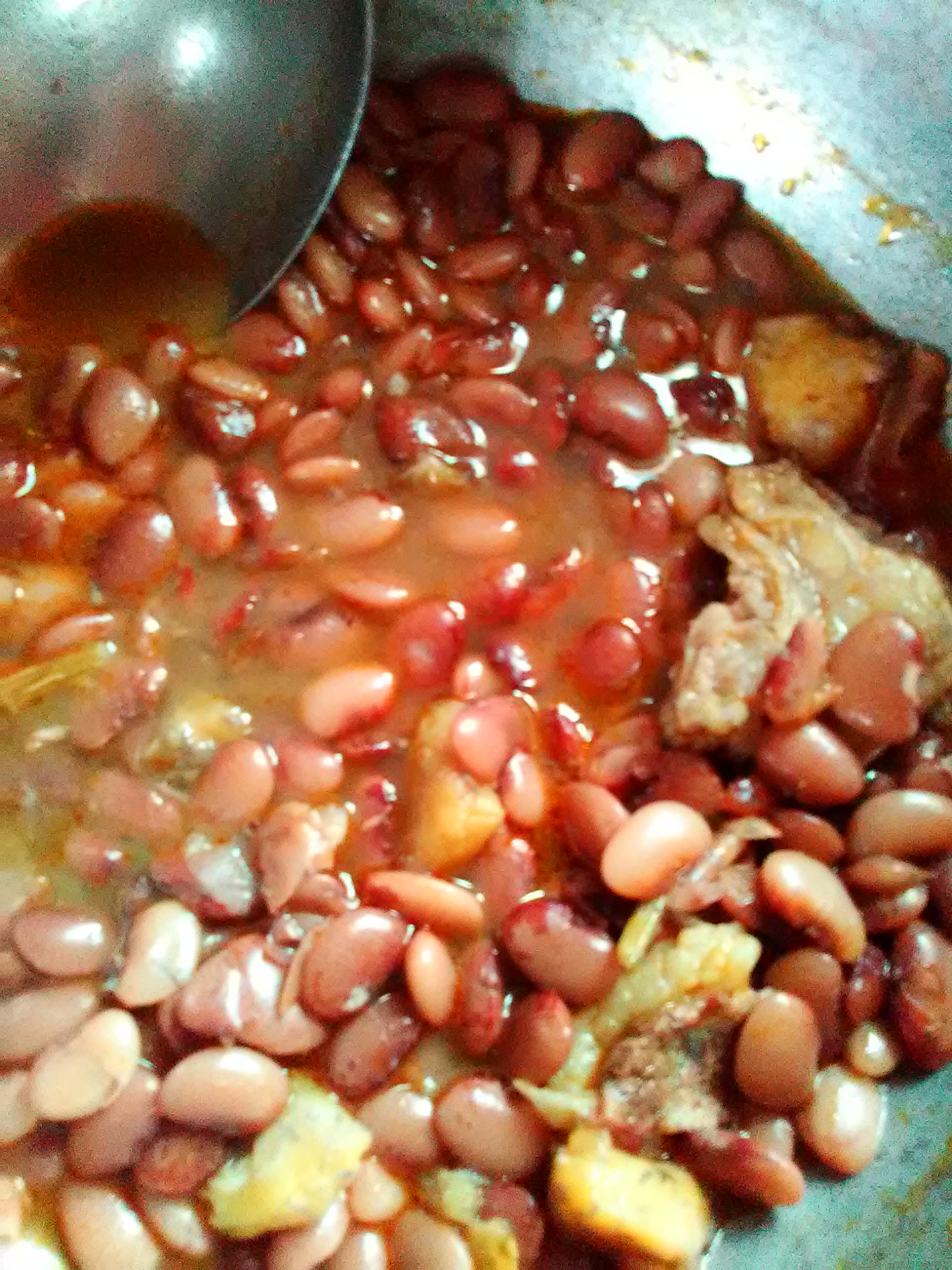 Caraotas pintadas acompañadas con costilla de cerdo y plátano adentro, definitivamente uno de mis granos preferidos aunque tenía mucho que no lo consumía ya que se necesita mucho gas domestico para su elaboración y aquí en mi país es bastante rudo poder obtenerlo.