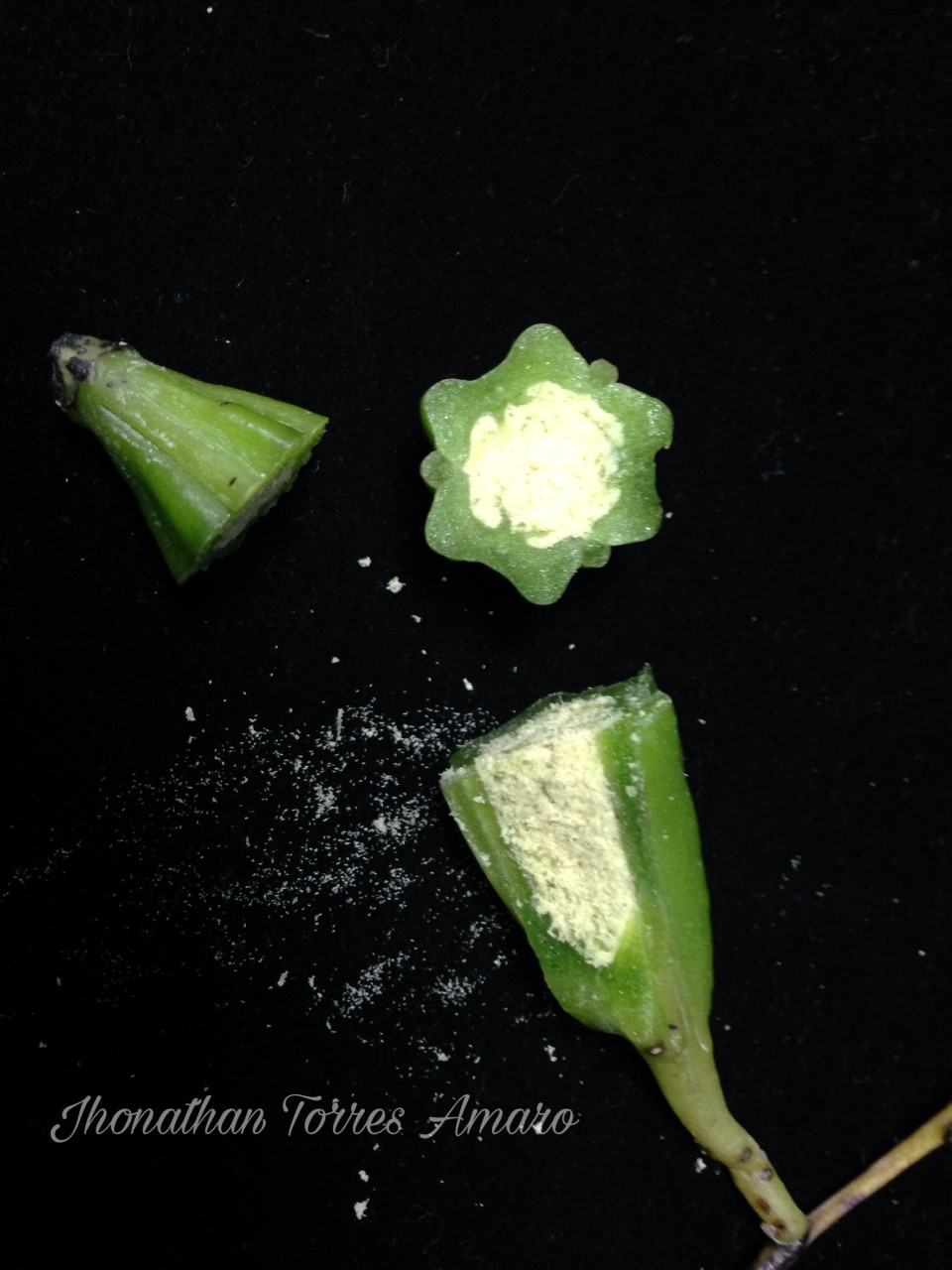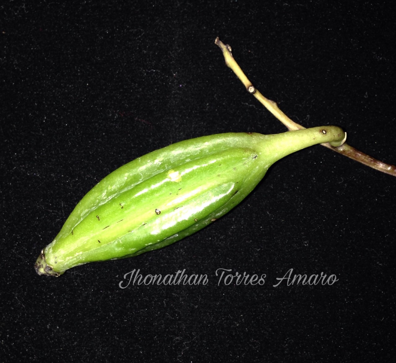 Figura 6. Fruto capsular de una orquídea con semillas a la vista. - Las semillas son diminutas. Su longitud suele oscilar entre 0,15 y 6 mm. Cada fruto puede contener entre 500.000 y 4.00.000 de semillas. Tienen una delgada cubierta seminal conformada por una capa de células. Son muy livianas, lo que contribuye a que sean dispersadas por el viento (Figura 6).