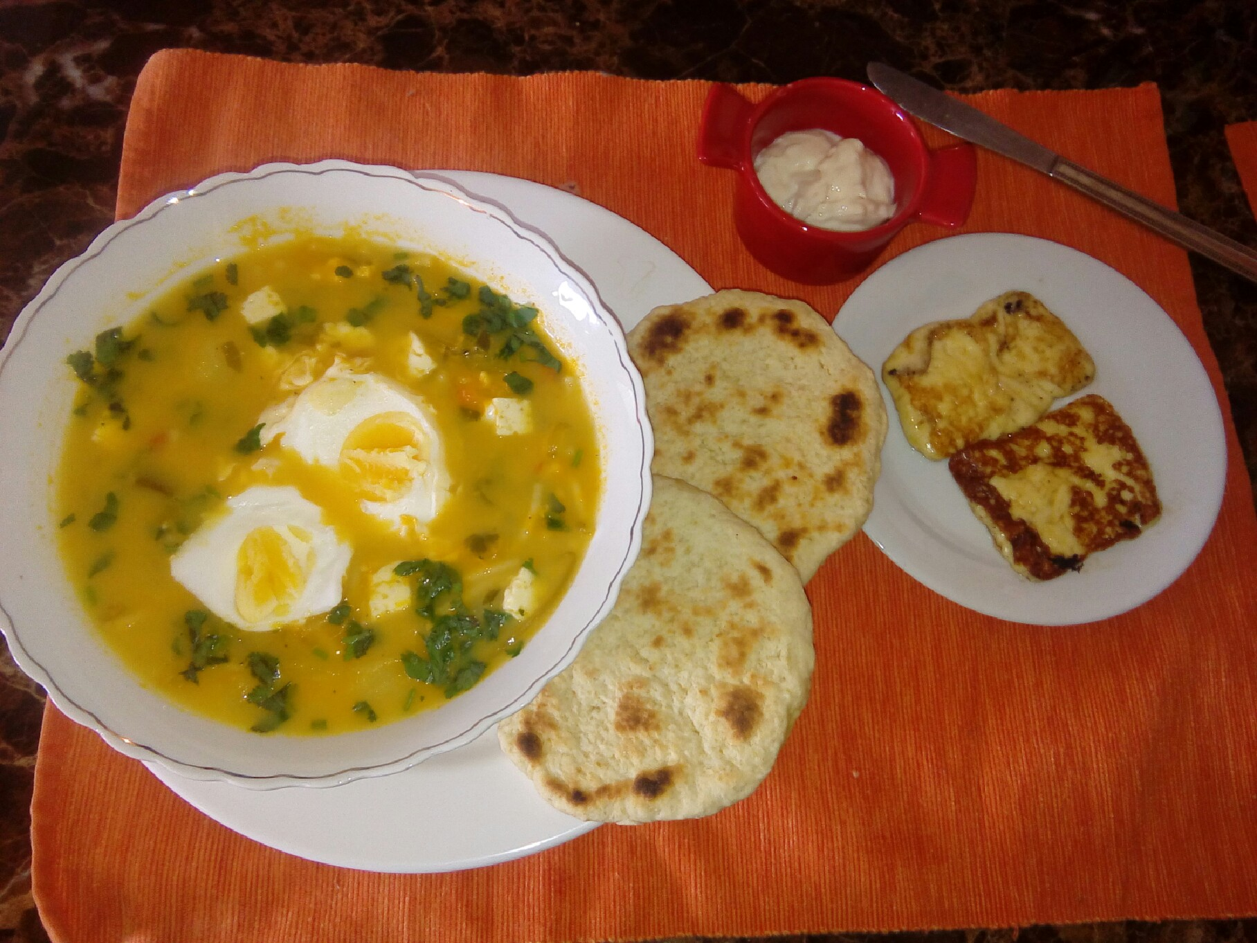 La pizca andina es un plato realizado con caldo de pollo concentrado, papas, aliños, leche, mantentequilla y queso... Es delicioso... Cualquier abuelita te puede dar la receta si le preguntas. El mondogo o mute andino es una exquisites, junto a la sopa de garbanzos.