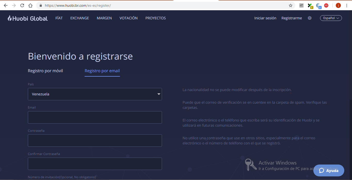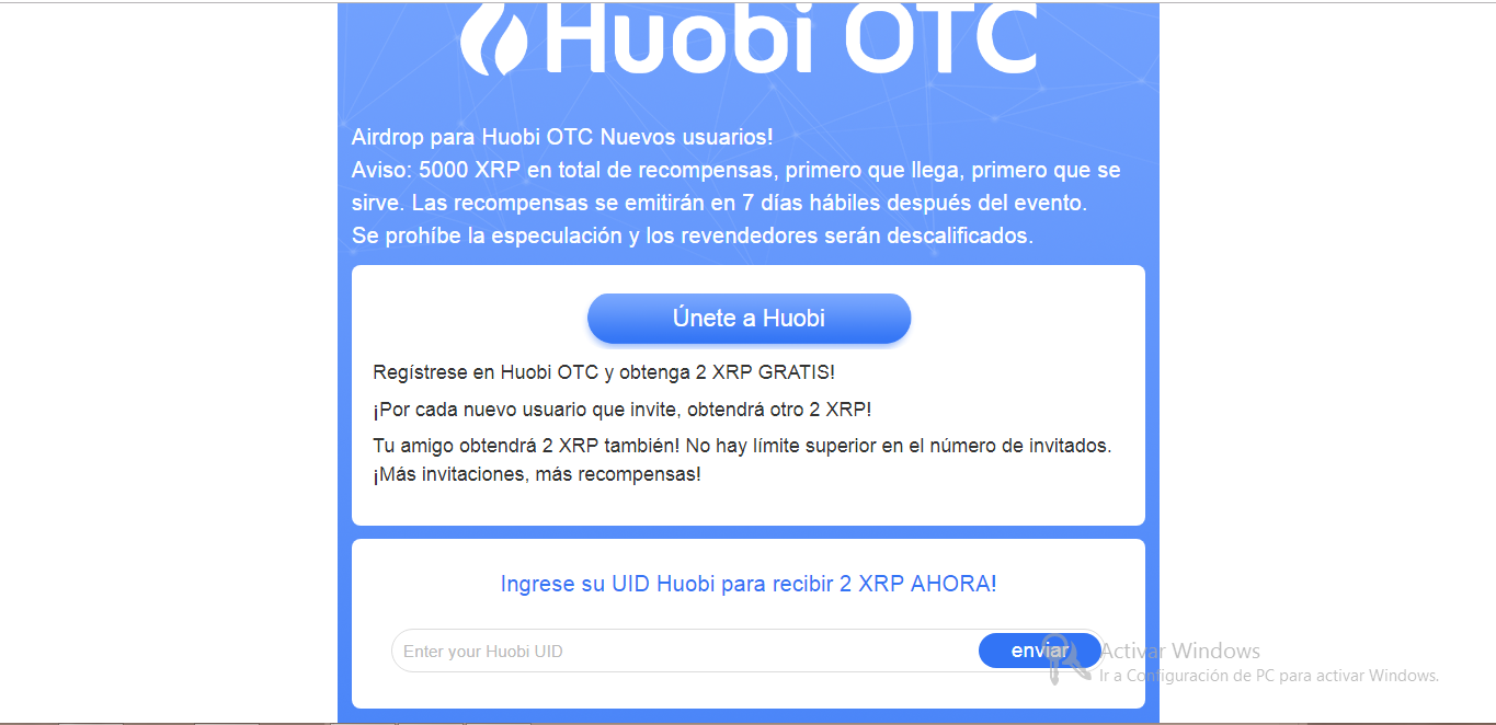En esta parte les van a solicitar colocar su codigo UID,este codigo lo van a conseguir en el Huobi,en la opcion de Cuenta y Seguridad.