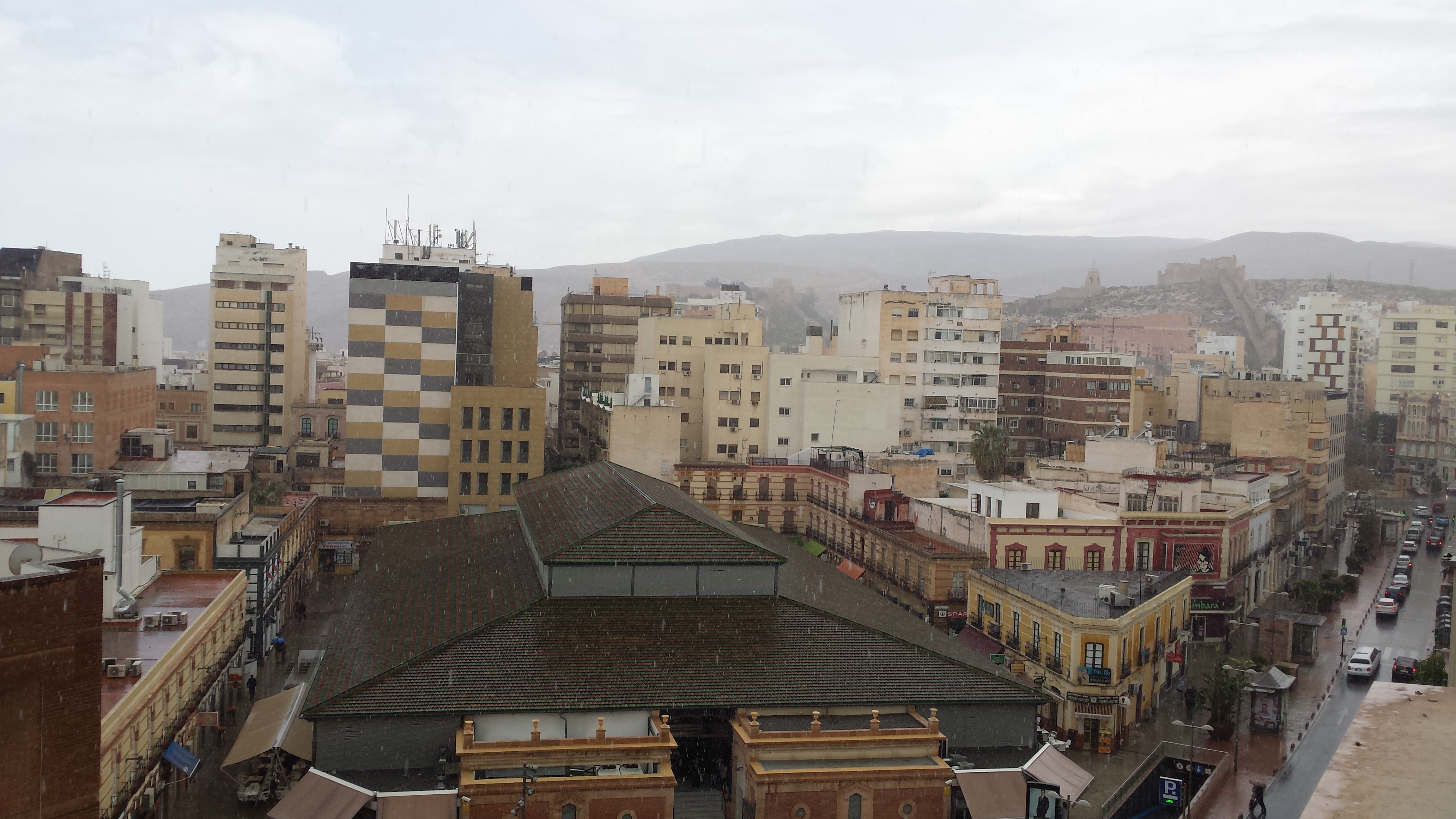 Aqui tenemos mi ciudad, Almeria en un día que poco ocurre, la lluvia.
