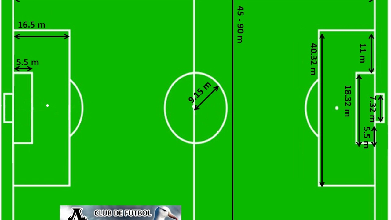 Las áreas de penaltis son rectangulares y ubicadas en el centro de las metas, se trazan a 16,5 metros de los postes verticales y adentrándose a 16,5 metros del interior del terreno, unidas por otra linea de mayor longitud, el trazado del área de meta es igual, pero se utiliza una medida de 5,5 metros.
