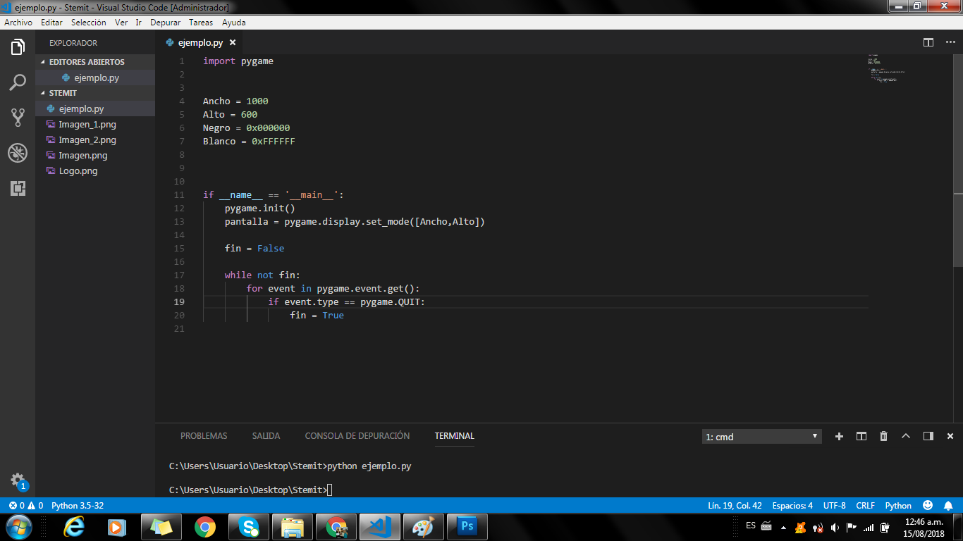 Esto es sobre el porque realizar vídeo juegos con python y no con c++. Pues bueno, el día de hoy empezare con un pequeño tutorial de como empezar a desarrollar vídeo juegos con python. Cabe aclarar que para poder desarrollar vídeo juegos con python debes tener una librería llamada pygame (Y por supuesto tener python instalado). Los tutoriales de como descargar esta librería se encuentran en youtube, así que pues no tiene mucha gracia que haga un tutorial de como descargar la librería e implementarla con python, mas sin embargo en estos días estaré haciendo una publicación de como descargar e implementar pygame.