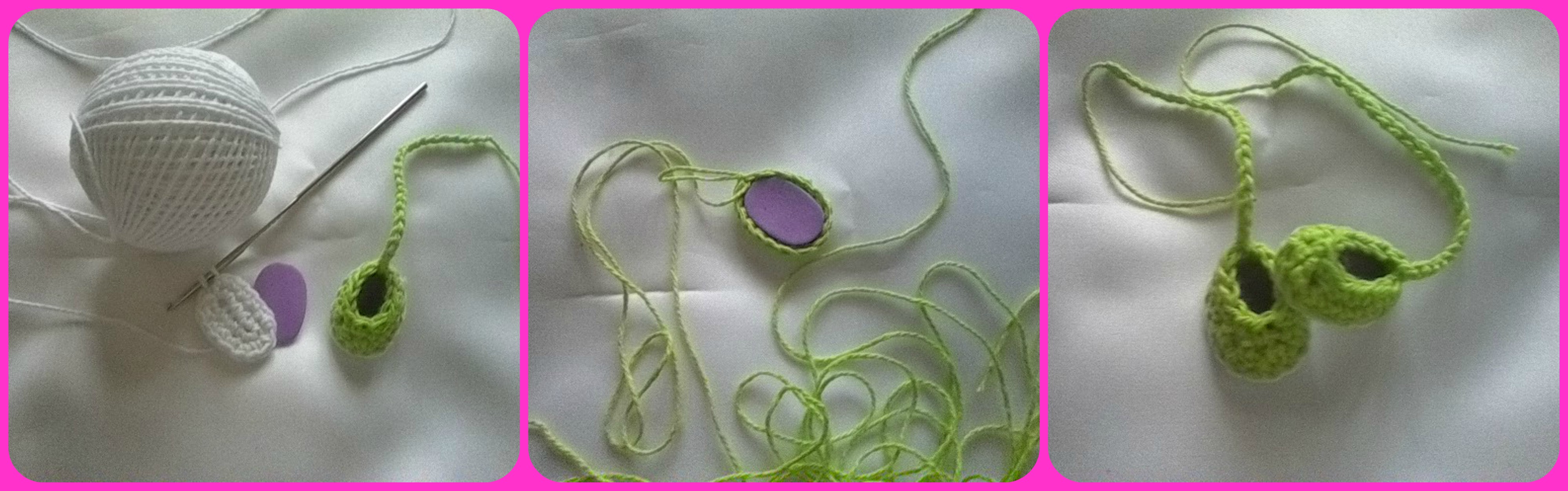Vuelta 7: 3 pb, 1 aumento, 6 pb, 1 aumento (estos dos últimos se repiten hasta finalizar la vuelta). Quedaran 3 pb y se tejen solos para cerrar. Total 48 pb.
