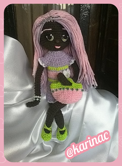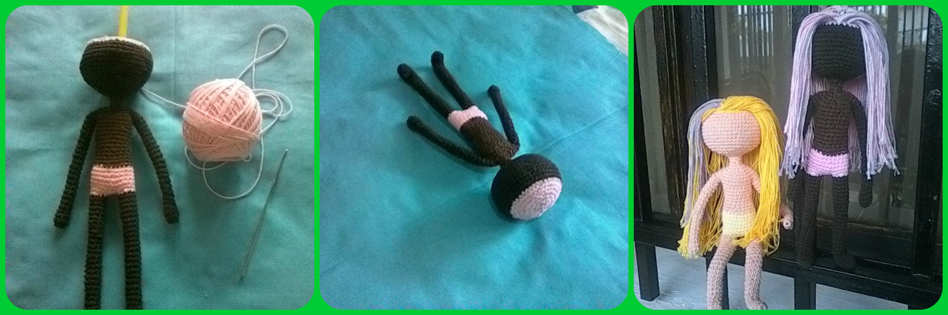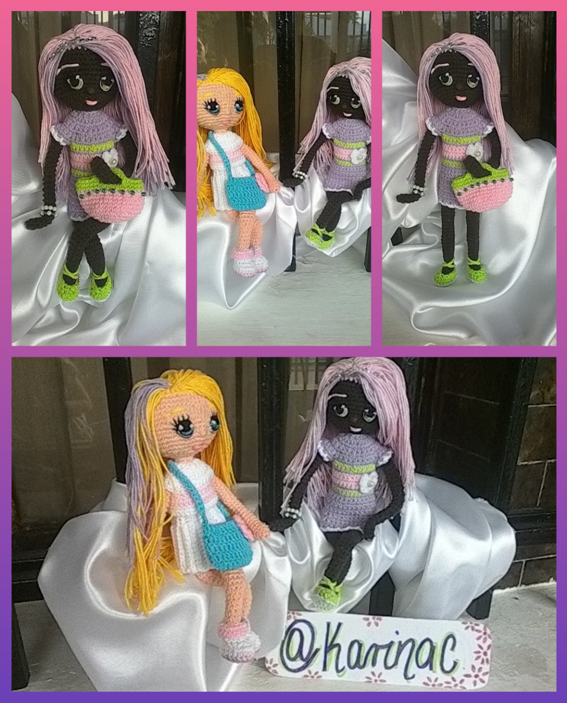 Una vez dicho esto y ya para entrar en materia hoy quiero compartirles uno de los trabajos que estuve realizando en este tiempo. Es la primera vez que lo hago y me encanto el resultado, aunque les confieso que me quedaron algunos detallitos pero como dicen la práctica hace al maestro. Siempre ando buscando algo nuevo que tejer y me encontré con esta hermosa muñeca, un proyecto muy bonito y refrescante que me entusiasmó tanto tanto que no solo hice una sino dos y lo más fascinantes de hacer este tipo de trabajos es que te sientes de regreso a la infancia y la emoción y la ansiedad se combinan pensando como quedarían una vez terminadas, con sus largos cabellos, luciendo sus vestidos, zapatos y accesorios que había diseñado para ellas y con mil ideas en mi mente planificando un futuro guardarropa.