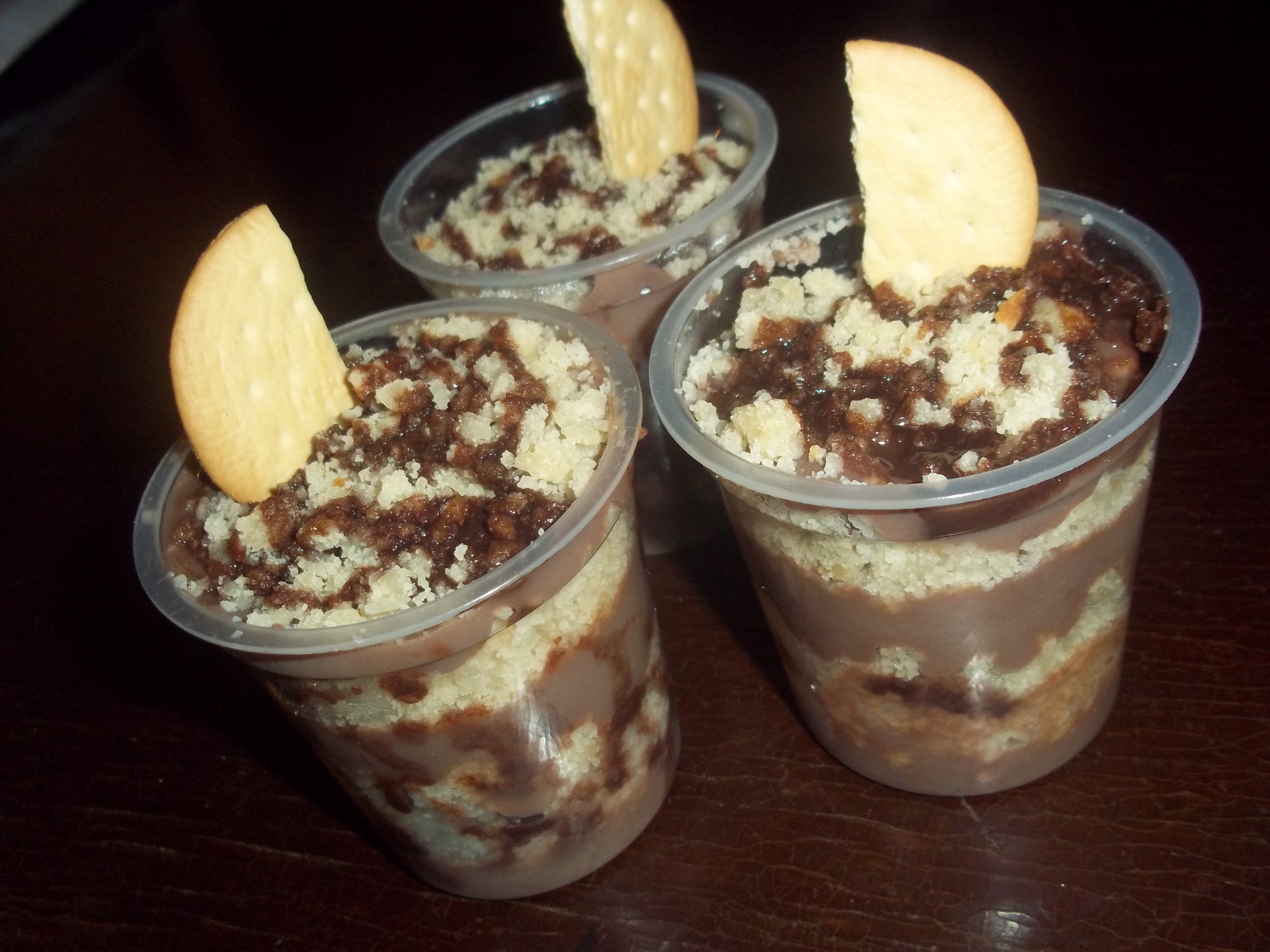 para tus fiestas prepara este rico postre usando capas de torta con pudin de chocolate repitiendo los pasos hasta cubrir todo el vaso y decora a tu gusto.