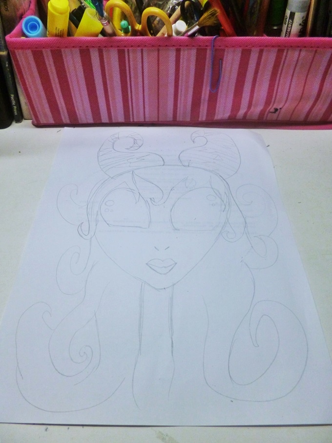 | Comencé con un boceto a lápiz de lo que sería la cara de LIBBY, luego hice la boca y el cabello. Posteriormente empecé a delinear todo lo que hice a lápiz. |