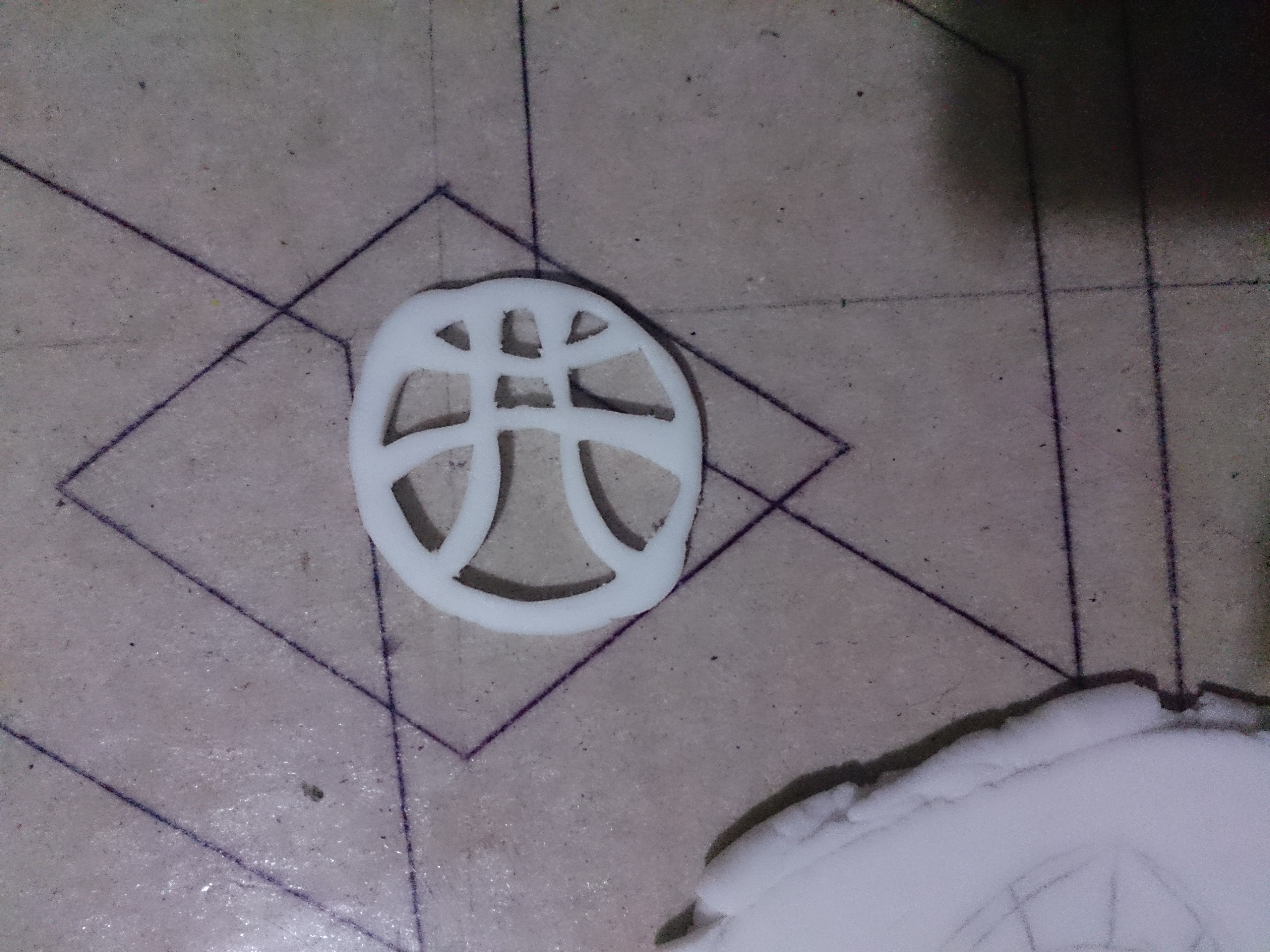 Una vez traspasado los dibujos a la Masa Flexible, procedes a cortar los excesos las piezas con el X-acto teniendo sumo cuidado de no deformarlas. Cuando el cuerpo del collar esté cortado, extiende sobre la superficie otro trozo de Masa Flexible con ayuda de un rodillo y fijas el cuerpo del collar a la masa con ayuda del Pegamento Blanco, luego cortas es excedente.