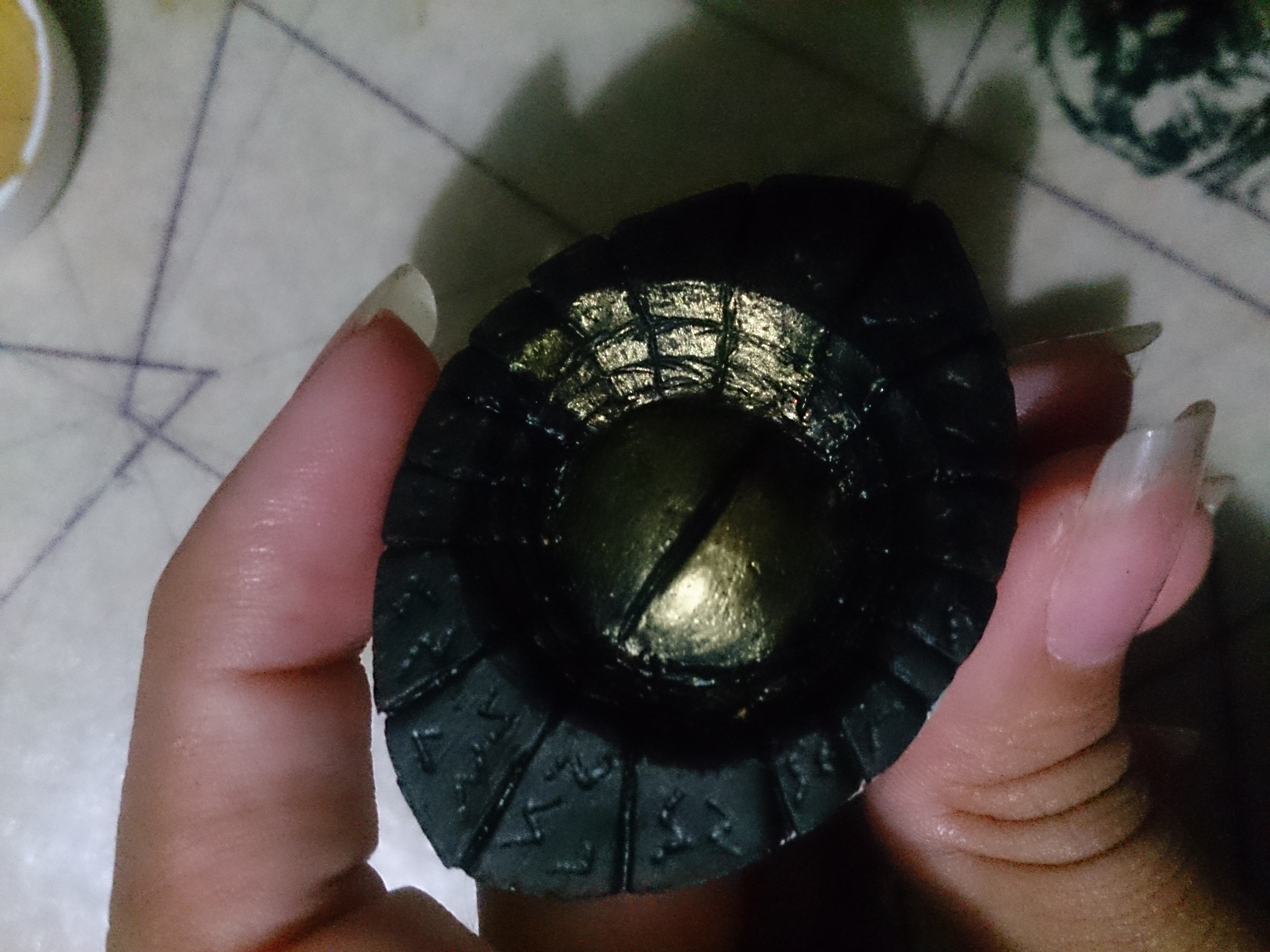 Una vez terminada la profundidad, coloca con pegamento una esfera la cual con ayuda de un estilete fusionaras con la base del collar; luego procedes a agregar todos los detalles pertinentes al dije y fondeas de negro.