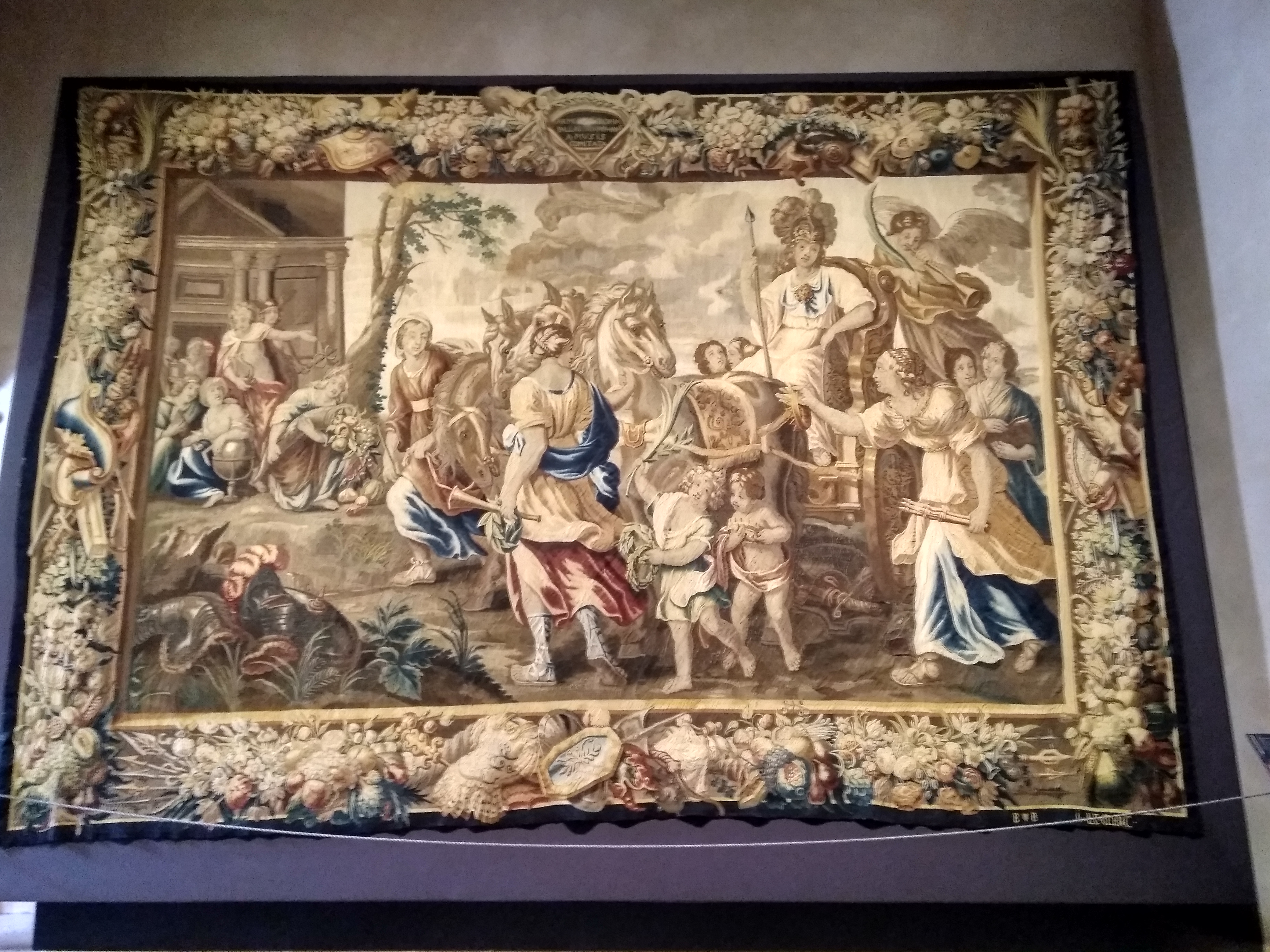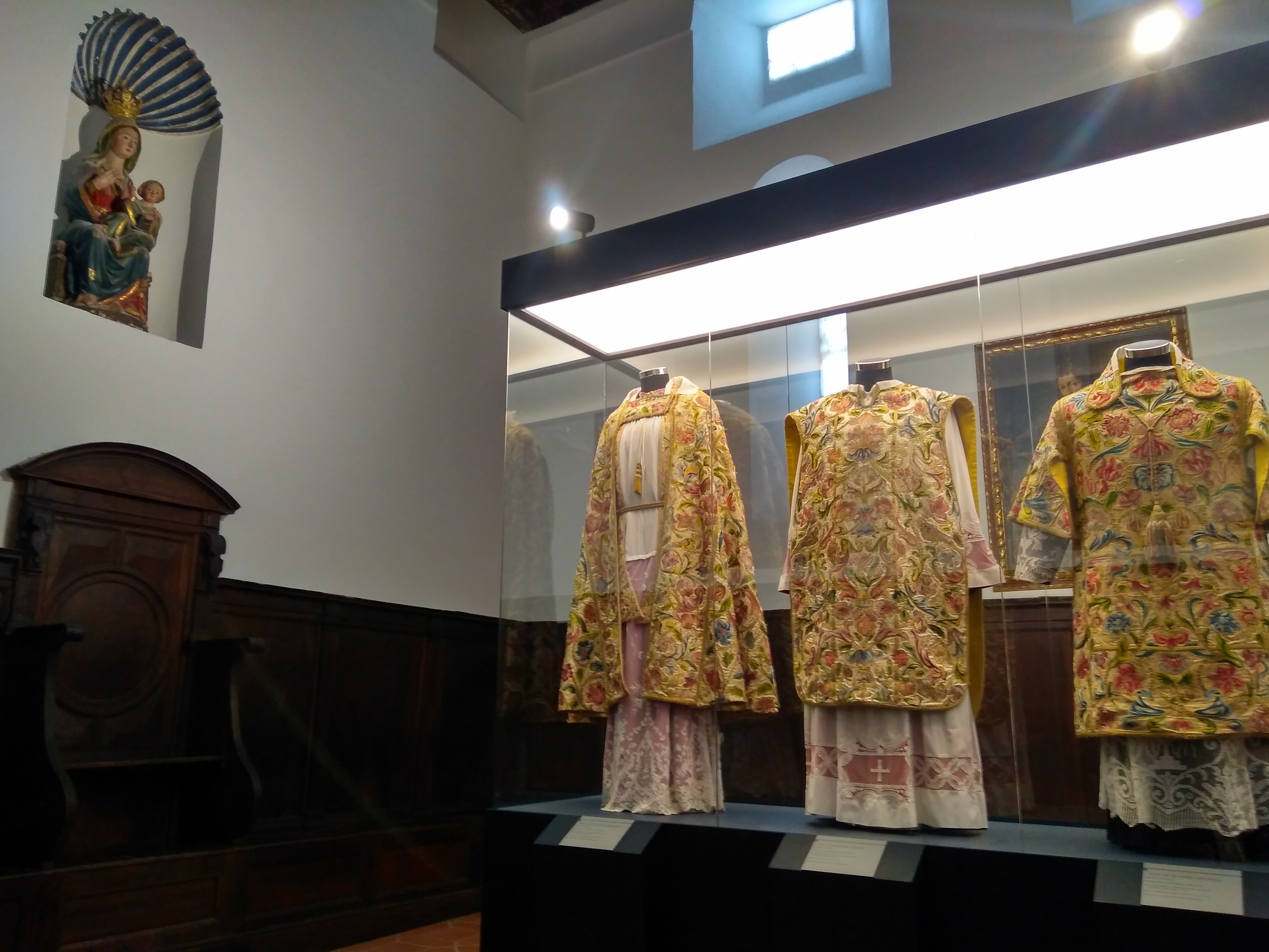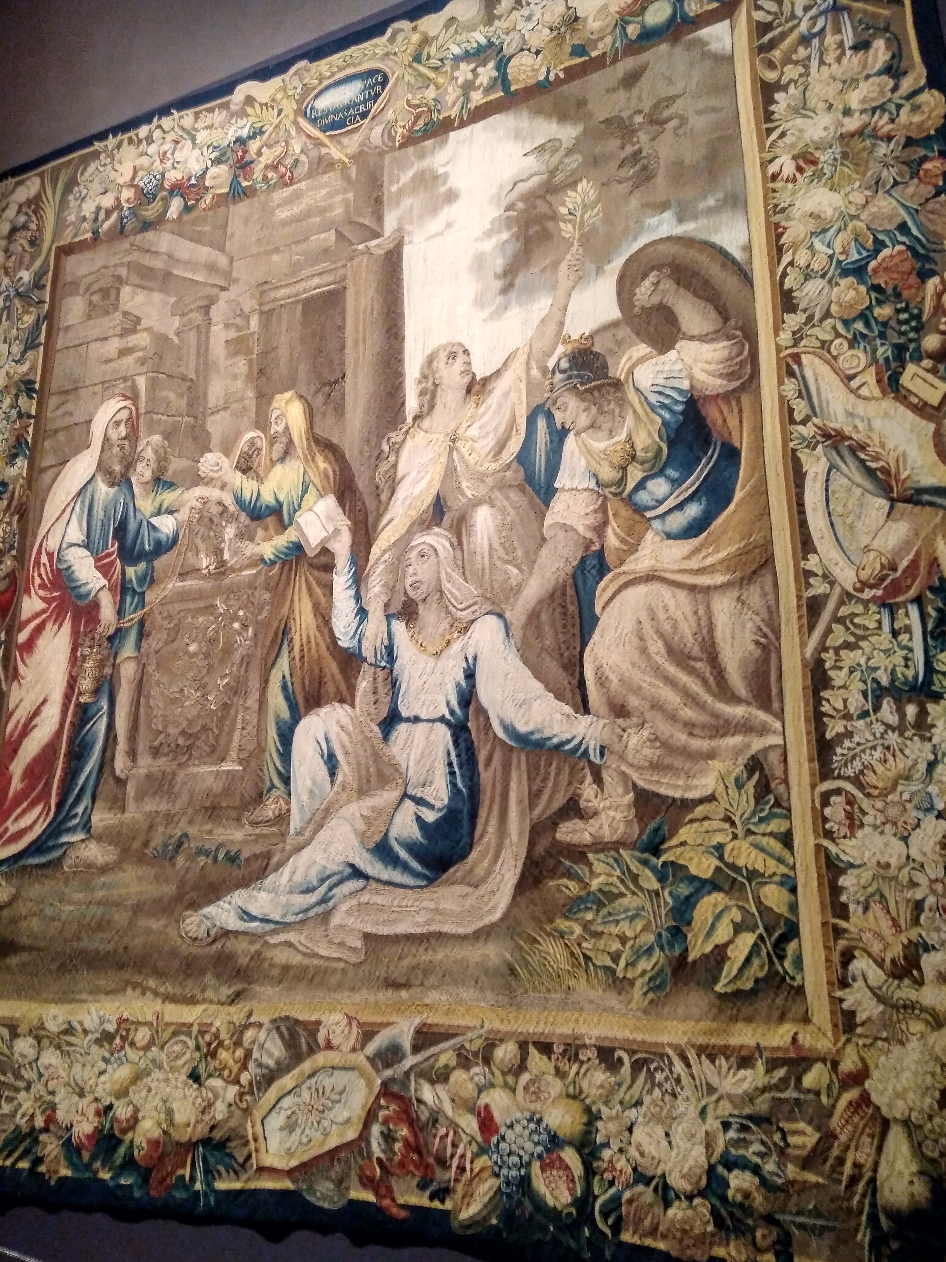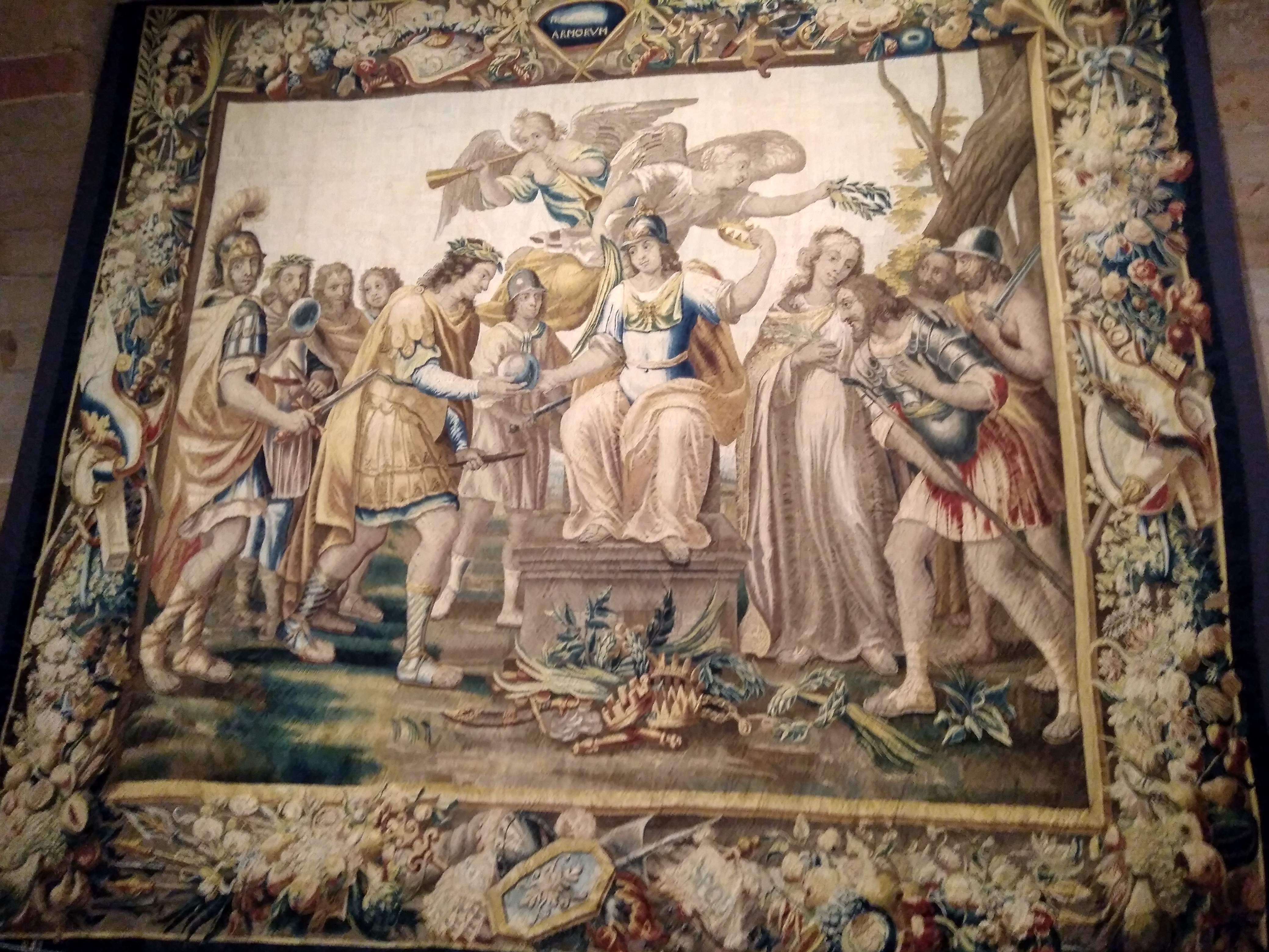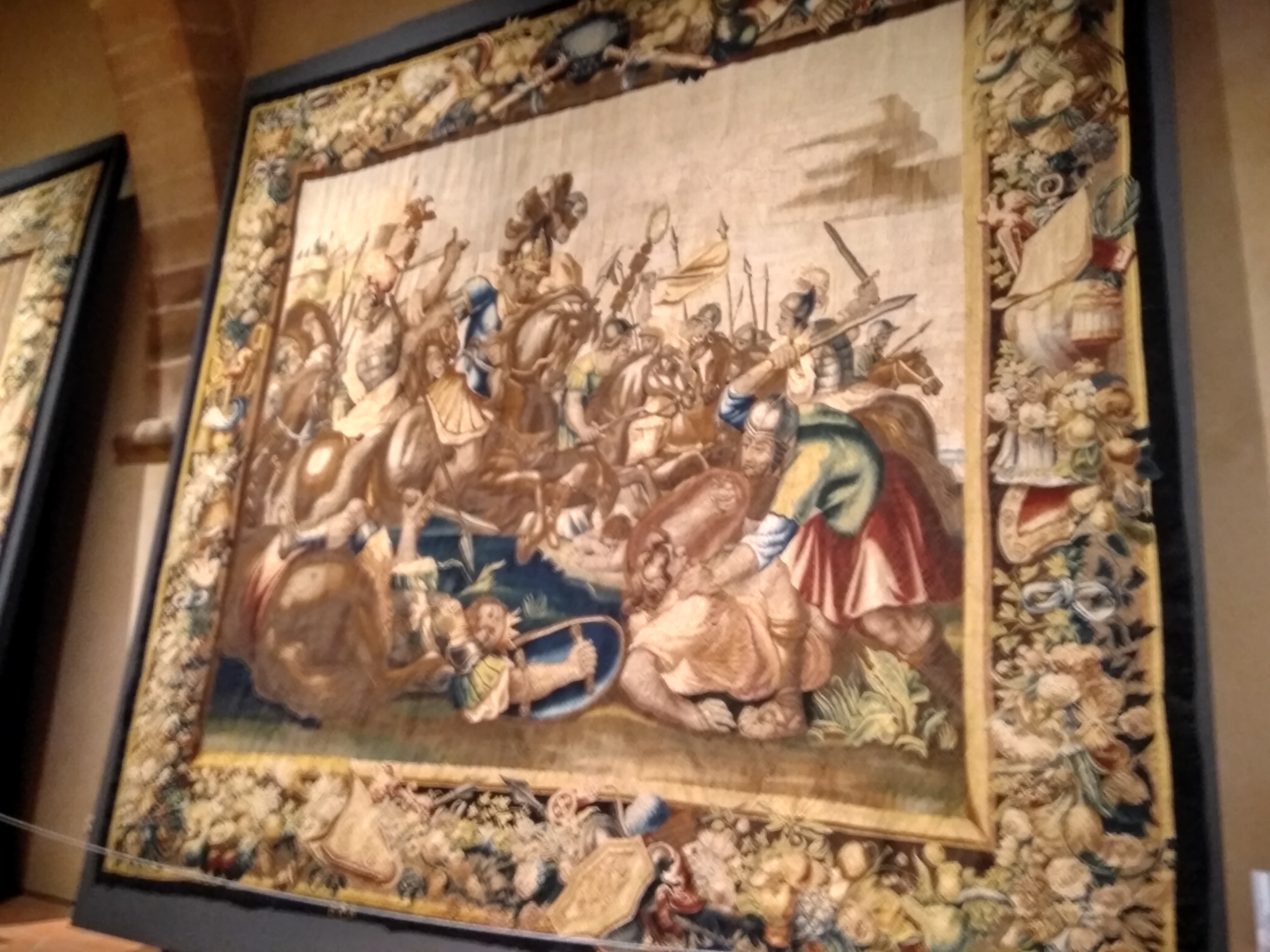 Entre las obras de arte que podemos encontrar, destacan los tapices de enormes dimensiones situados en dos de las salas del claustro.