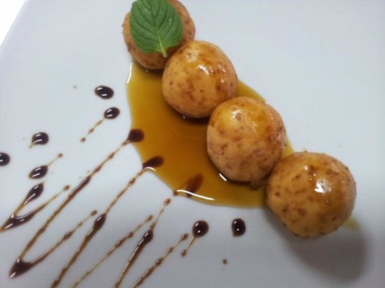 - Dibuje un circulo de coulis fresco en el plato. Haga rayas de salsa agridulce. Acompañe los buñuelos, puesto en media luna, con ensalada de brotes.