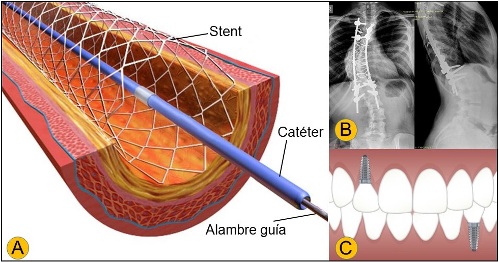(A) Stent vascular: Bruce Blaus, CC BY 3.0 - Fuente.