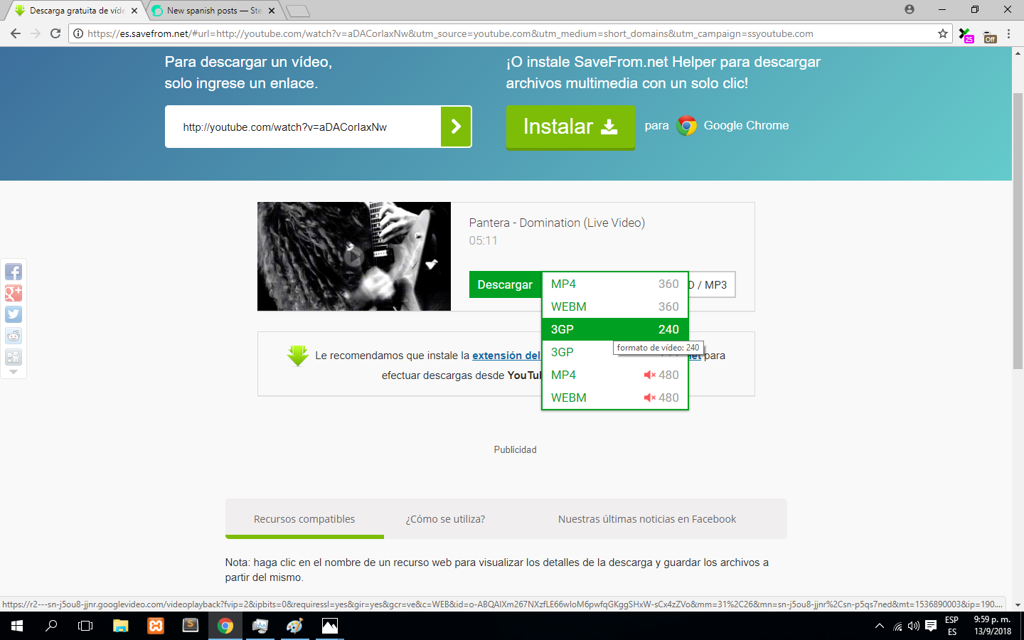 Ahora solo presiona ENTER y te redirigirá a una pagina nueva y solo debes elegir el formato en el cual quieres descargar el video:
