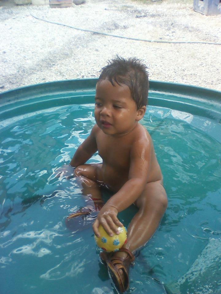 Esta foto que quiero compartir con ustedes es José Javier disfrutando de un baño en la tapa del taque de mi suegra que es para el una piscina ese día disfruto de casi dos horas jugando y según el nadando alli solo tenia año y medio ya este galán tiene 5 años.