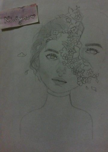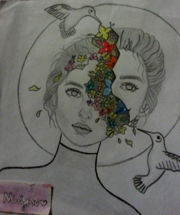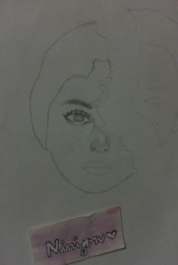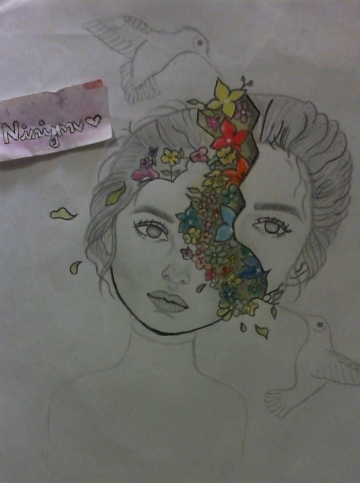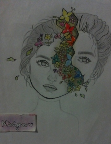como toque personal le agregue color a las flores que están saliendo de su rostro. Haciéndolas ver mas llamativas con la intención de hacer ver que, lo que realmente importa no es lo que esta en tu exterior, eres hermoso por lo que llevas dentro, no solo por tu físico.