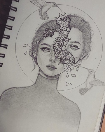 Comencé realizando los bordes del rostro, realizando su cabello, ojos, labios, nariz, oreja de una manera muy suave para luego ir agregando cada detalles de ellos. luego realice las flores y su cuello, por ultimo realice los pajaritos y agregue el circulo al rededor de su rostro. tal como pueden observar en el paso a paso.