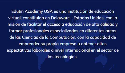 Edutin Academy es una institución enfocada hacia la educación virtual, en su página web (https://edutin.com/) puedes encontrar cursos gratis, cuyo certificado tiene un precio acordé a la economía de tu país, y también te llevarás una buena sorpresa al descubrir las carreras que te ofrecen.
