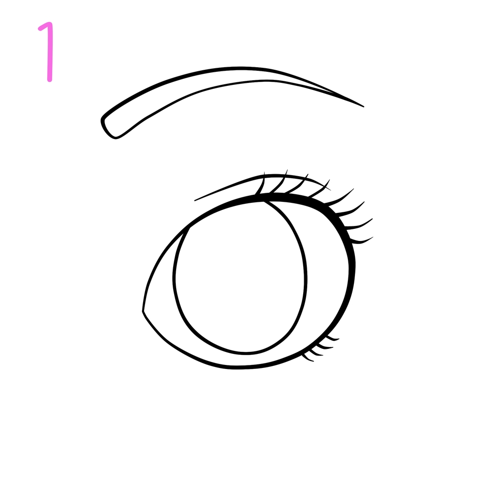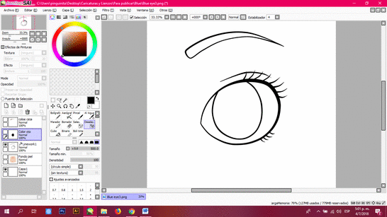 Dibuja tu ojo en el lienzo sobre una capa Line Work. Esta capa te permitirá editar tus trazos si no han quedado como deseas, a su vez deja elegir espacios por separado para pintarlos con distintos tonos.