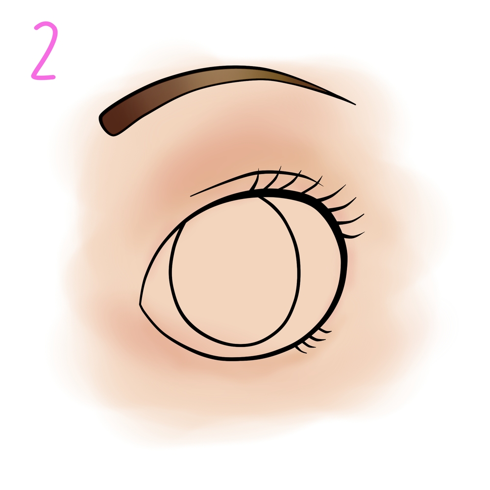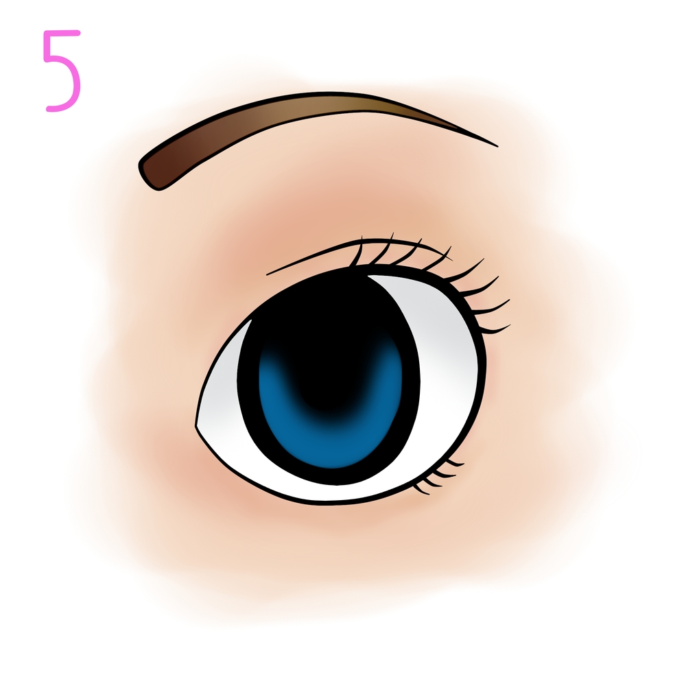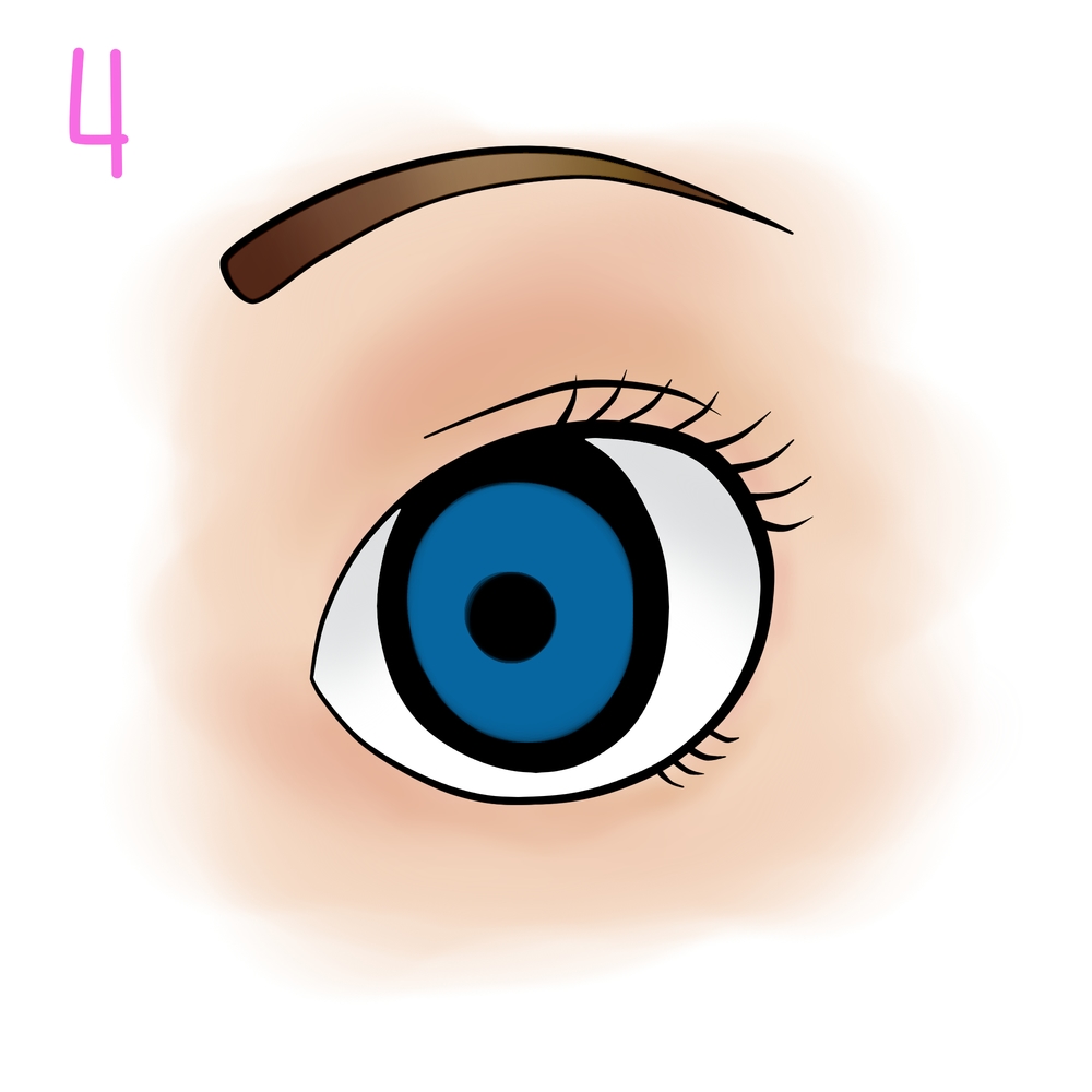 Coloca debajo una capa normal y píntala color piel utilizando la herramienta aerógrafo, puedes elegir los tonos que desees para la piel y las cejas de tu dibujo, utiliza un tono más oscuro para la zona del párpado y las zonas con sombras.