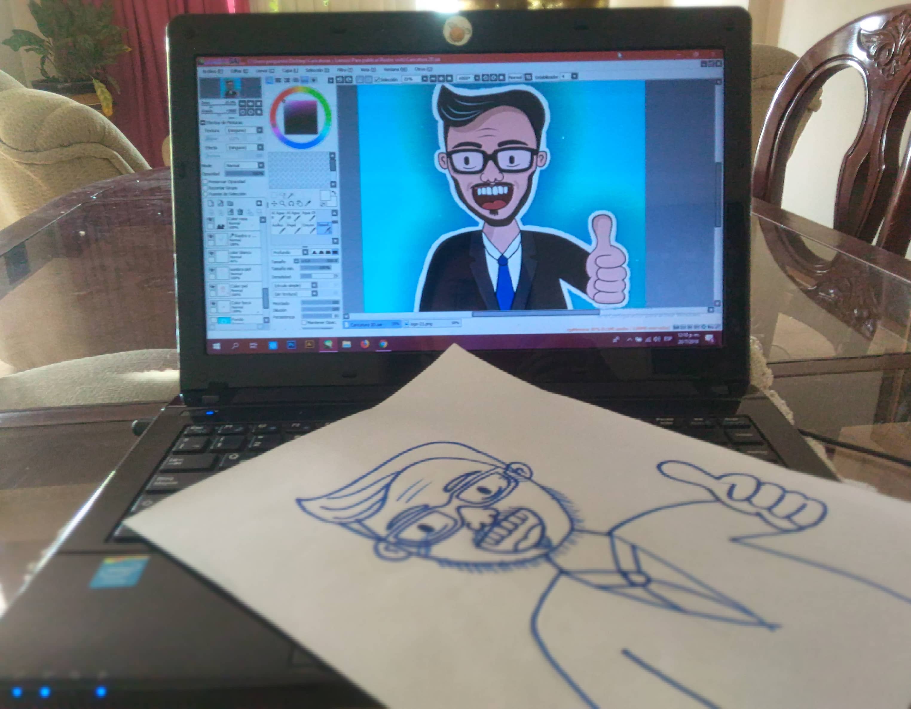 Este proceso comenzó dibujando un boceto a mano alzada donde quise reflejar todos los rasgos más característicos del sujeto, en especial la forma de su rostro, boca y lineas de expresión para así poder transportarlo a mi manera de ver a las personas modo caricatura (nada perfecta).