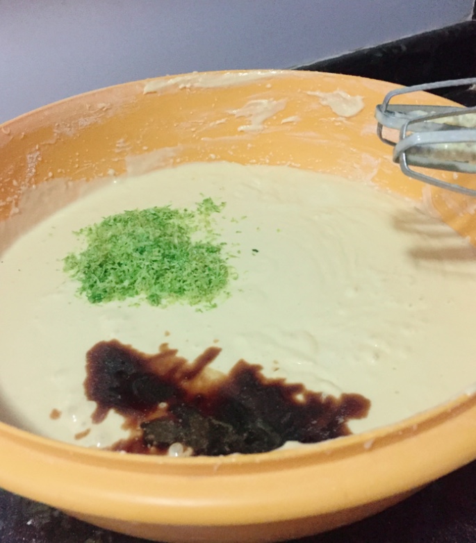 - Añadir la ralladura del limón (asegurando no rallar la parte blanca, para evitar sabores amargos) y la vainilla, mezclar sin batir en exceso. También podría agregarse de forma manual.