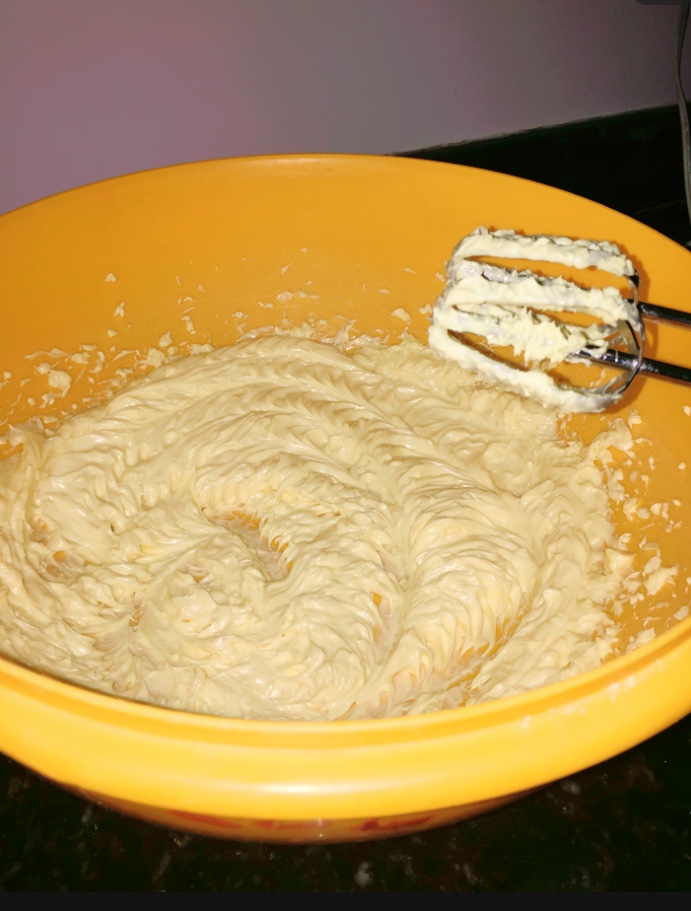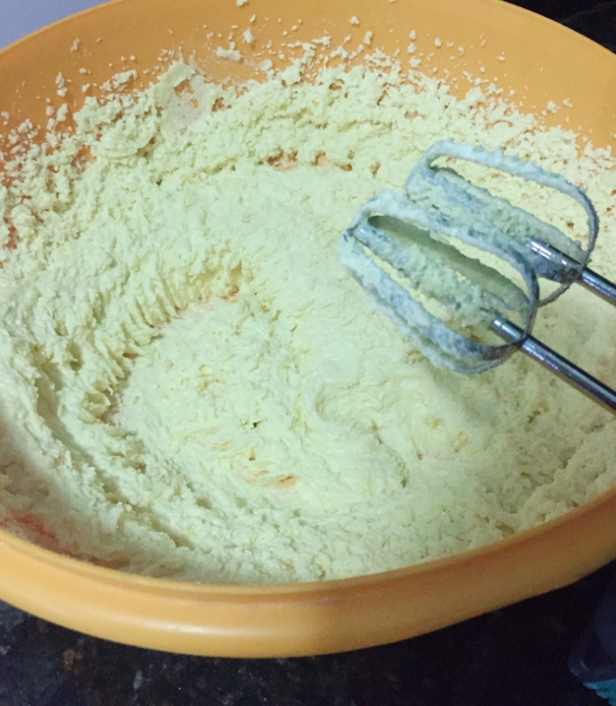 - Con la mantequilla a temperatura ambiente, empezar a batirla hasta obtener una crema y de un color pastel.