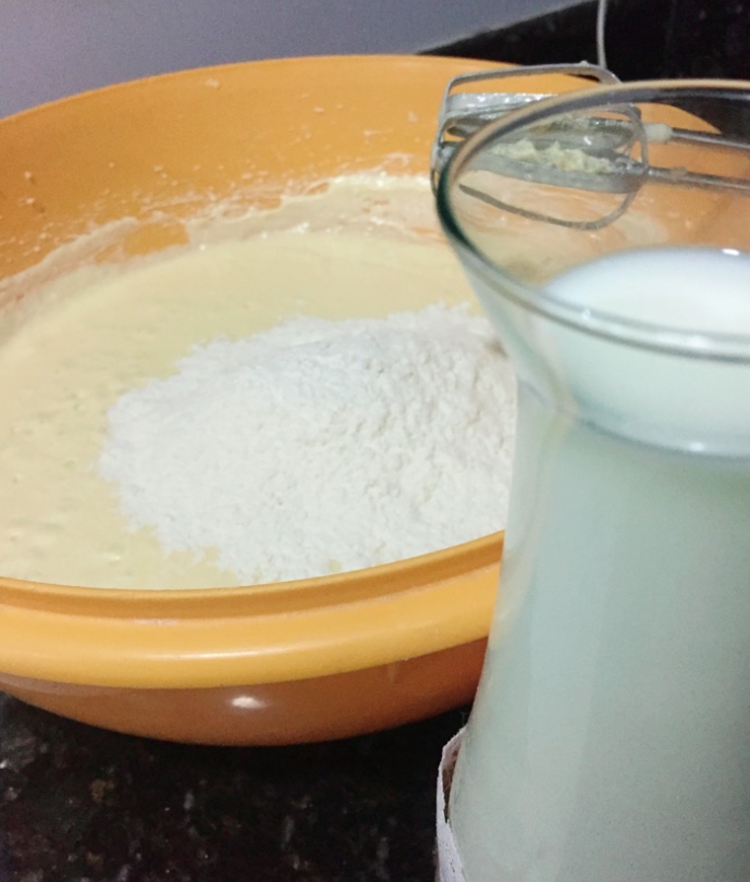 - Incorporar la harina y la leche, alternando seco y líquido.