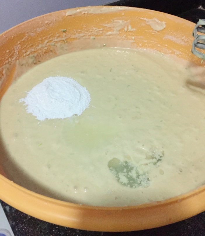 - Agregar el polvo de hornear junto con el zumo del limón recién exprimido, batir hasta que estén incorporados completamente.