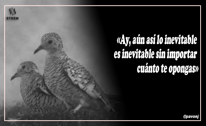 »Ay, aún así lo inevitable es inevitable sin importar cuánto te opongas. Entonces, un domingo dormí hasta tarde y mi pajarillo oyó a otros de los suyos cantando entre los árboles. Ay, pajarillo, si tan solo me hubiera hecho caso y no hubiese salido de casa, pero no fue así. Él salió y resultó que todo era una trampa. Los zorros y buitres, mil veces malditos, lo hicieron para atraparlo. Ahora, solo veo a mi pajarillo en mis sueños —terminó diciendo, con un atisbo de lágrima comenzando a nacer de su mejilla.