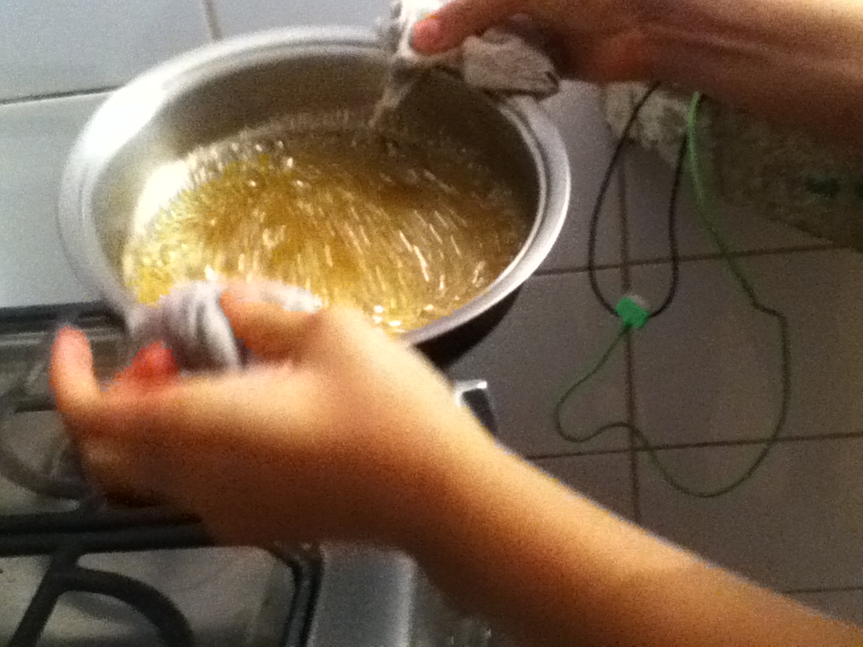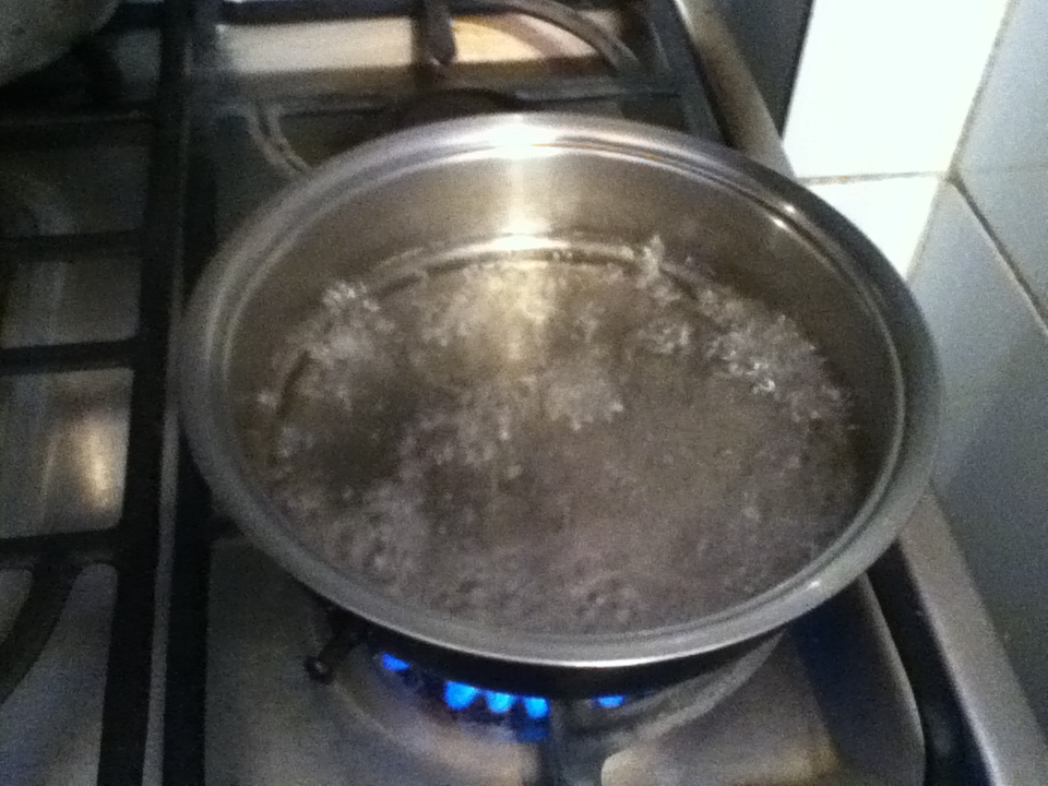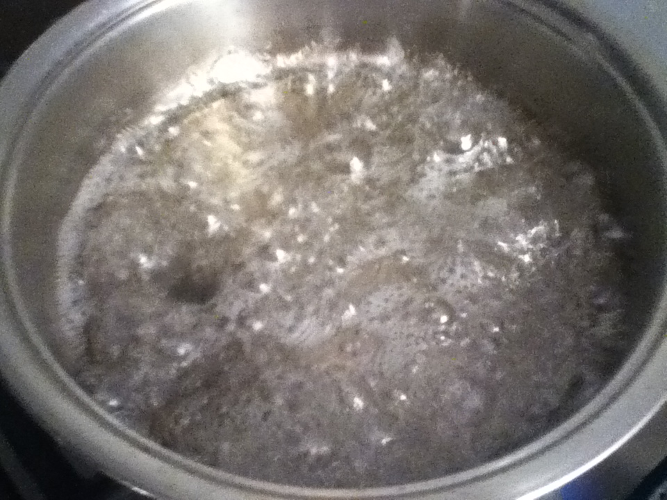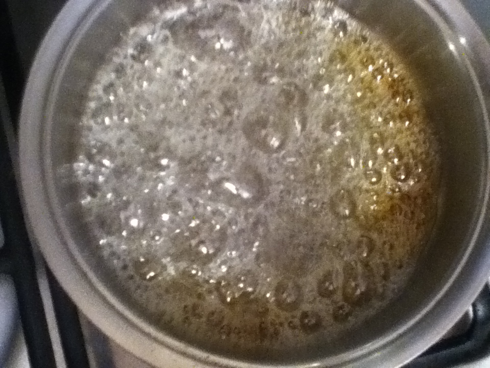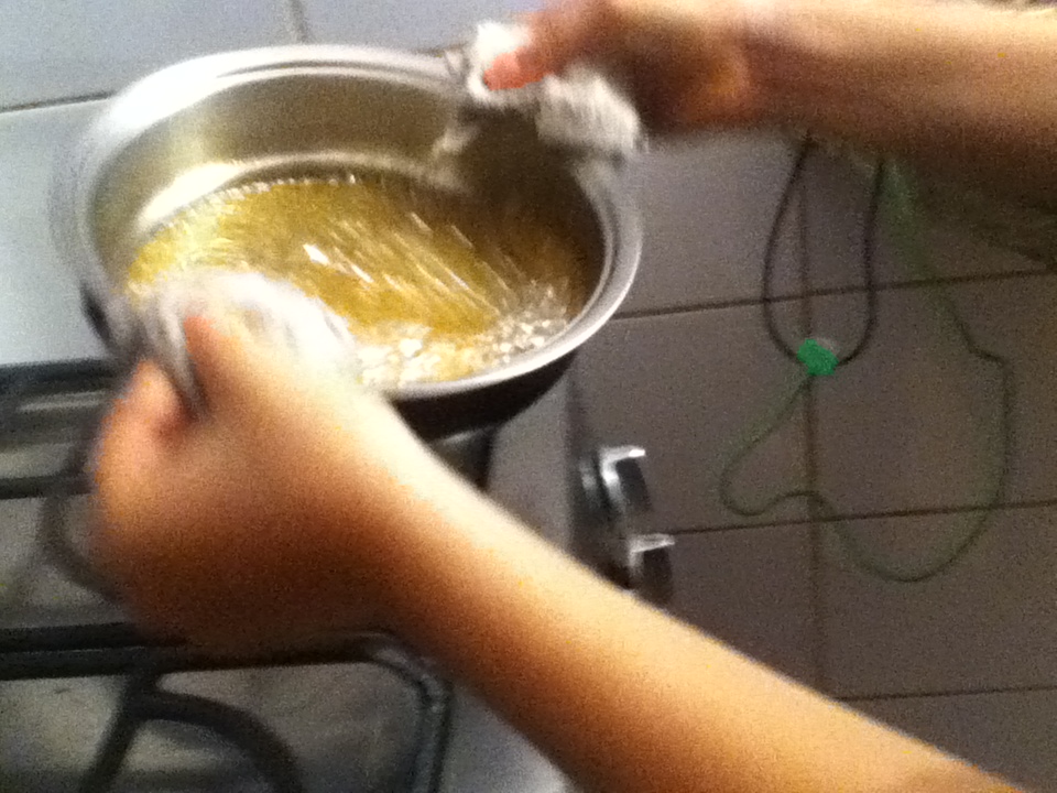 - Para comenzar ensendemos la hornilla, colocamos la olla y le echamos la taza de azúcar y agua. Esperamos a que hierva como a continuación.