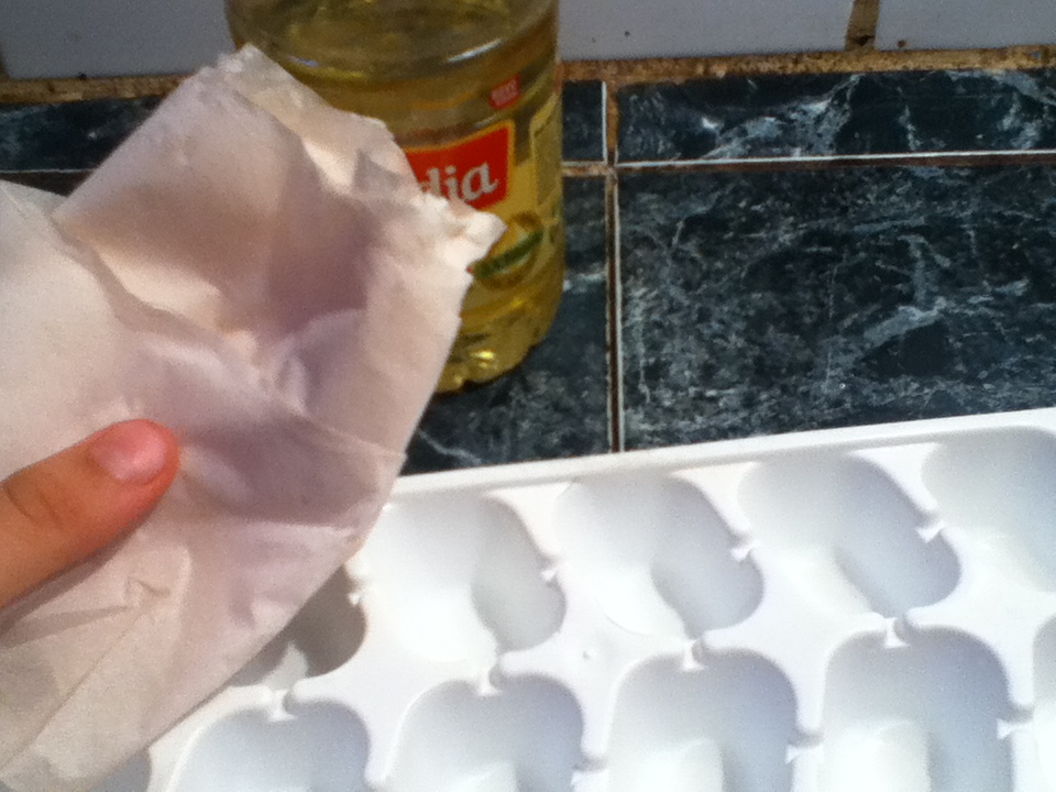 - Aparte en una cubeta de hielo le agregamos aceite con una servilleta.