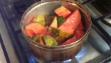 - Se cortan las guayabas en trozos grandes, luego se pasan a cocinar en el agua, mediante unos 10 o 15 minutos.