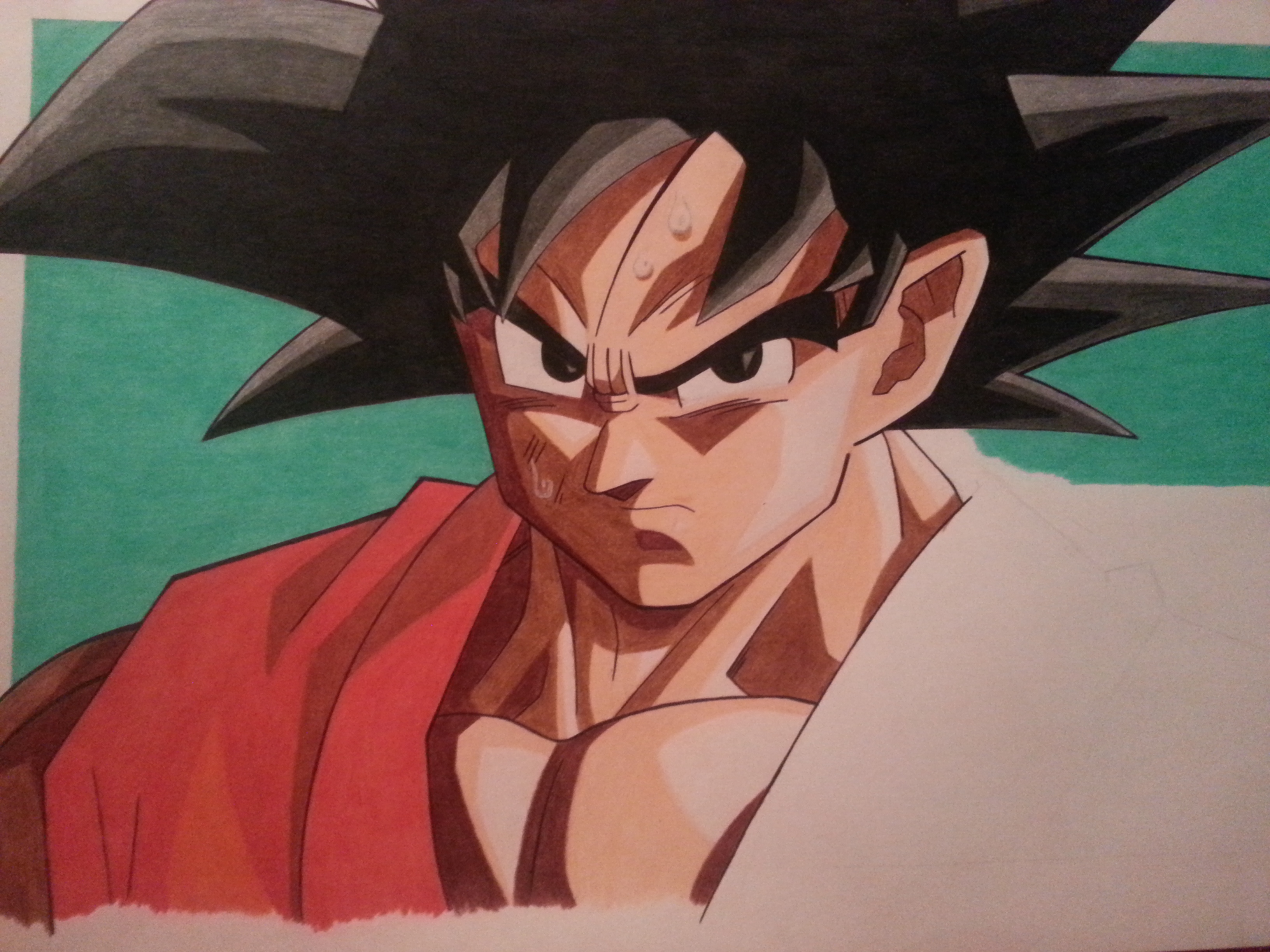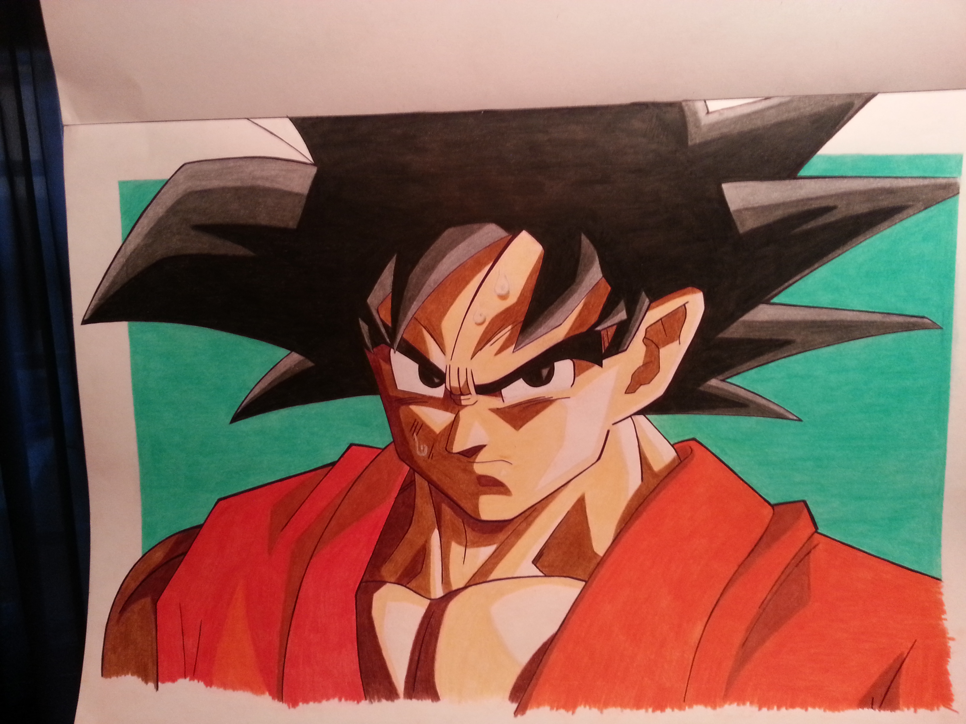Heey, qué tal? hoy les traigo un dibujo de Goku que hice como hace dos años, este dibujo es de cuando empezaba a dibujar y en aquel entonces tenía mucha influencia de la obra de Akira Toriyama en mi estilo de dibujo. Yo asimilo que esto es algo que le suele pasar a muchas personas cuando empiezan a dibujar, sobre todo manga o anime, y están muy pegados a Dragon Ball. En youtube hay mucha gente que hace dibujos de cocúms, casi parece una especie de tendencia artística dentro de la plataforma, yo por mi parte solía hacer unos cuantos cocúms así que me quedó este para el recuerdo jaja