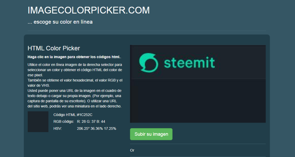 Si quieres usar los colores de tu logo, empresa o marca personal pero no sabes cuál es, mediante esta página puedes saberlo https://imagecolorpicker.com/es Solo debes subir la imagen y luego hacer clic en el color que deseas saber el código (mejor resultado con la mejor calidad de imagen)