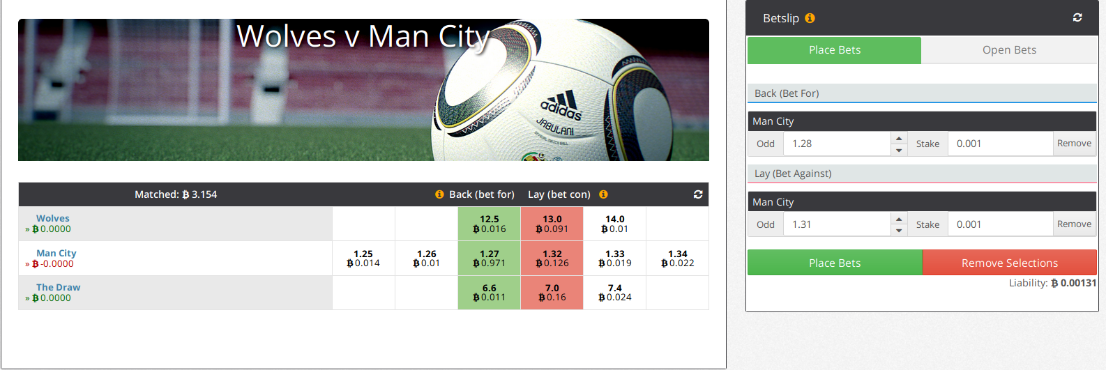 Por ejemplo puedes mejorar las cuotas por el Manch City, si alguien acepta las dos cuotas que has puesto ganas seguro un margen igual que las casas de apuestas.