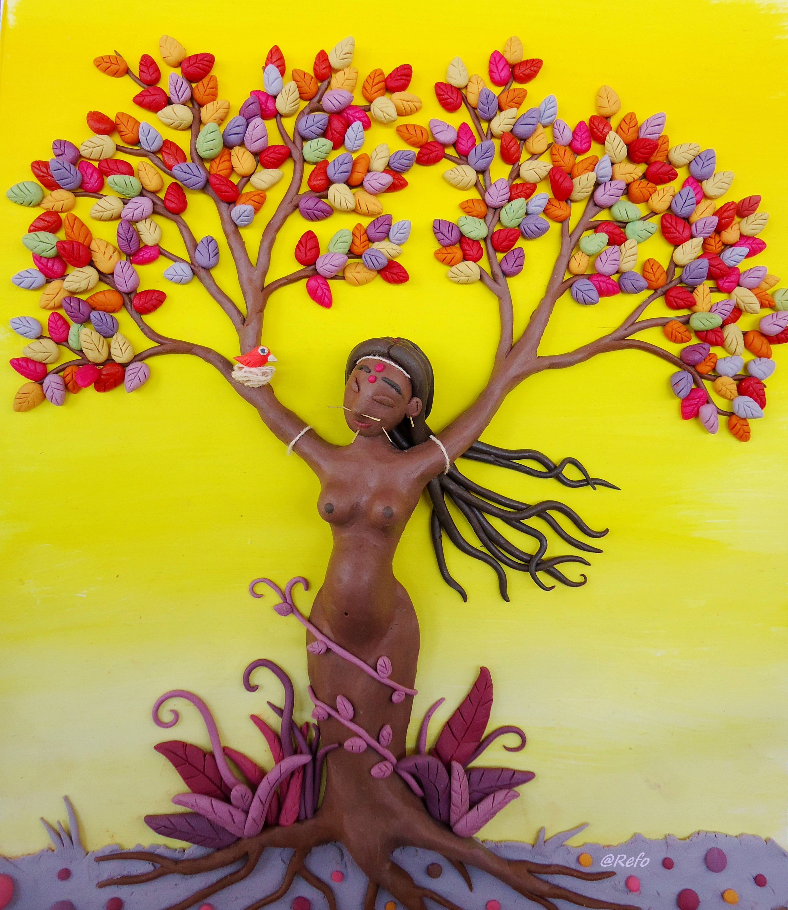 Siguiendo con la temática de árboles simbólicos, en ésta ocasión compartiré con ustedes una pequeña obra en plastilina a la que titulé "Maxitari", que en lengua yanomami significa "Aliento de la Madre Tierra".