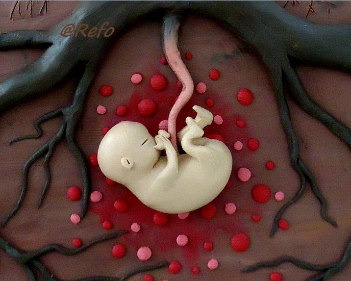 Incorporé un pequeño embrión que se gesta en las entrañas de la madre tierra y que ésta unido por un cordón umbilical al árbol, queriendo representar la fecundidad de la madre naturaleza y la conexión que existe entre todos los seres vivos a través de vínculos especiales, invisibles en la mayoría de los casos, pero que son el canal de comunicación para quienes se sintonizan con su sensibilidad primordial.