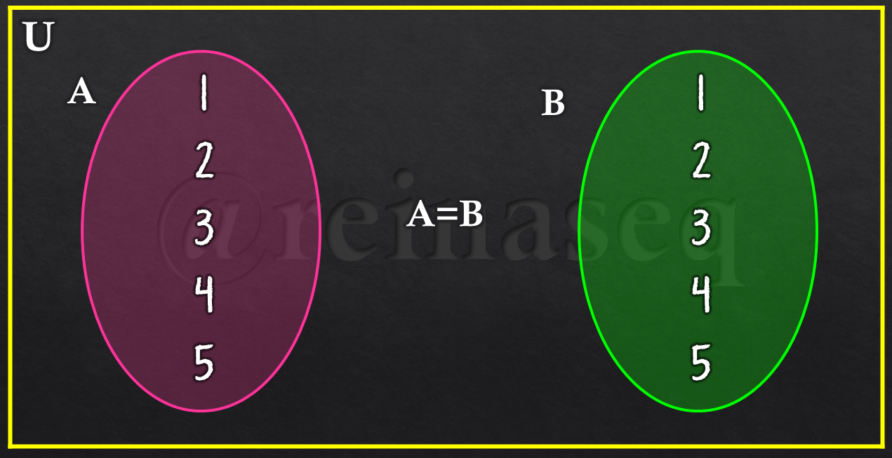 Cuando pensamos en la posibilidad de que dos o más conjuntos sean iguales, lo primero que podemos responder es lo obvio, deben tener los mismos elementos. Matemáticamente hablando y teniendo presente la definición de Inclusión de Conjuntos, se dice que dos conjuntos cualesquiera A y B son iguales si y sólo si los elementos del primer conjunto pertenecen al segundo y los elementos del segundo pertenecen al primero. Esto quiere decir que para demostrar que dos conjuntos son iguales se debe a su vez demostrar la doble inclusión. En símbolos, esta definición se representa como sigue
