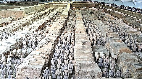 Pensó que gobernaría por siempre pero no pudo engañar a la muerte,Qin Shi Huang el hombre mas poderoso del mundo para su época a los 49 años muere, su tumba de 50 km2 no solo fue preparada para recibirlo a el,sus esposas que no le dieron hijos, cientos de artesanos y custodiando a su Emperador una fuerza de 8.000 soldados Los Guerreros de Terracota fueron enterrados.