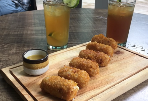El primer plato que pedí fueron unos tequeños, pero ellos les dice Fried Cheese Wrap, son mejores que los tequeños porque le echan más quesos, lo sirven con una salsa de parchita o maracuyá que es espectacular.