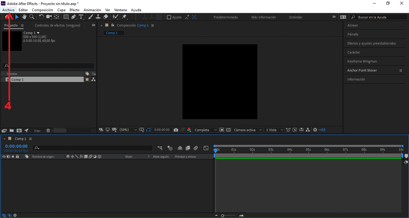 Empezaremos creando una nueva composición.