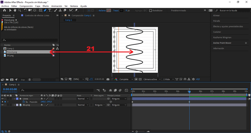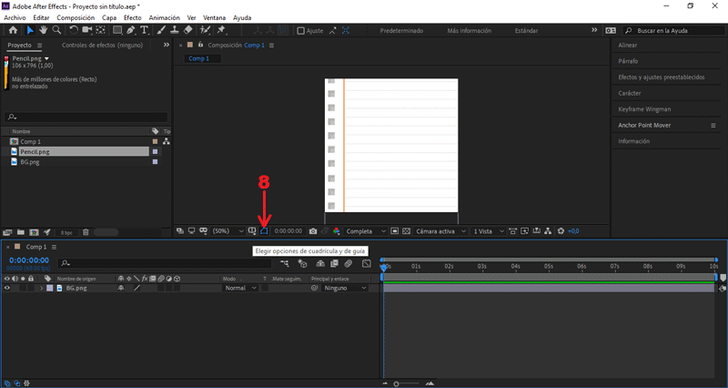 Movemos «BG» bajo la imagen «Pencil», en la línea de tiempo.
