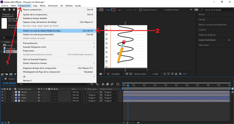 Presionamos Composición/Añadir a cola de Adobe Media Encoder...