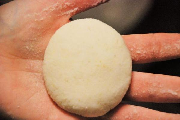 • Una vez alcanzada la textura adecuada de la masa, se comienza a crear bolitas y se van aplastando en forma de círculos. Si las quieres hacer más grandes debes hacerles un agujero en el centro con tu dedo, para que se cocinen mejor.